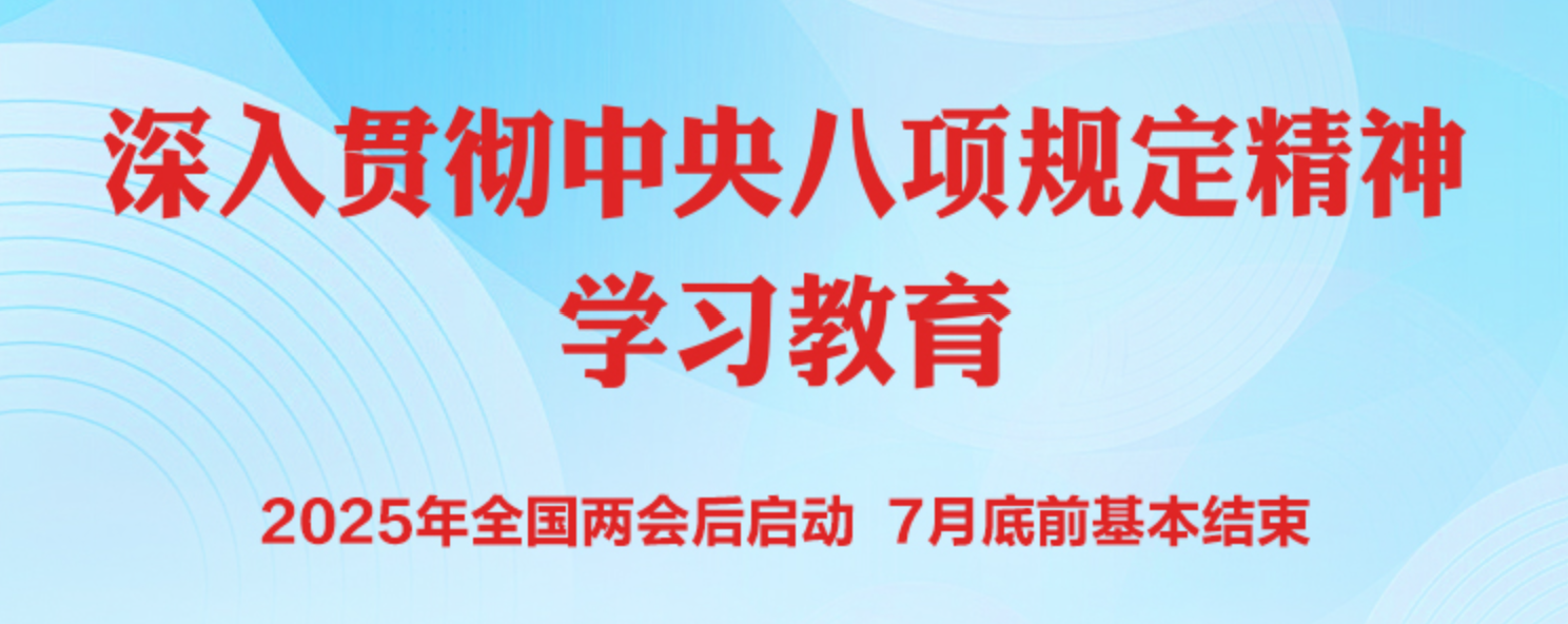 《通知》指出,为贯彻落实党的二十届三中全会部署,巩固拓展学习贯彻习近平新时代中国特色社会主义思想主题教育成果,巩固深化党纪学习教育成果,锲而不舍落实中央八项规定精神,推进作风建设常态化长效化,经党中央同意,在全党开展深入贯彻中央八项规定精神学习教育(以下简称“学习教育”)。学习教育于2025年全国两会后启动、7月底前基本结束。