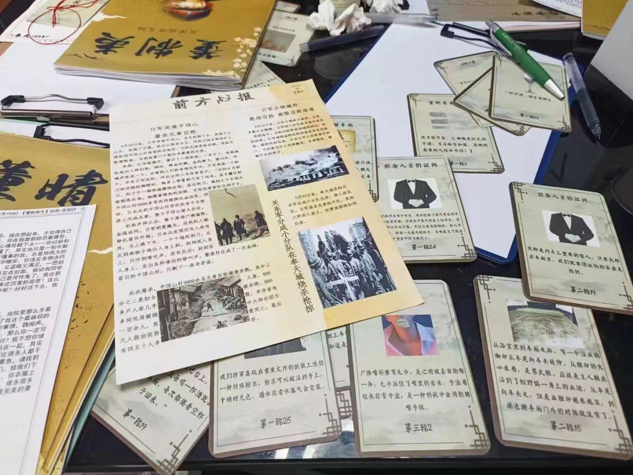 本次活动选取“红色剧本”《兵临城下》,以中国近现代革命历史中的真实事件为原型,将红色基因融入到剧本杀中,讲述了抗日战争期间社会各阶层的角色在面对民族大义和亲情、友情、爱情进行生死抉择的故事。在4个小时的演绎过程中,学生通过扮演不同角色进行情景问答、搜证推理等互动,还原故事真相,实现与革命先辈们的隔空对话,切身感受世事变迁中的悲欢离合,感悟“舍小我而利公,行大道而忘我”的英勇无畏精神,汲取红色精神和革命力量。