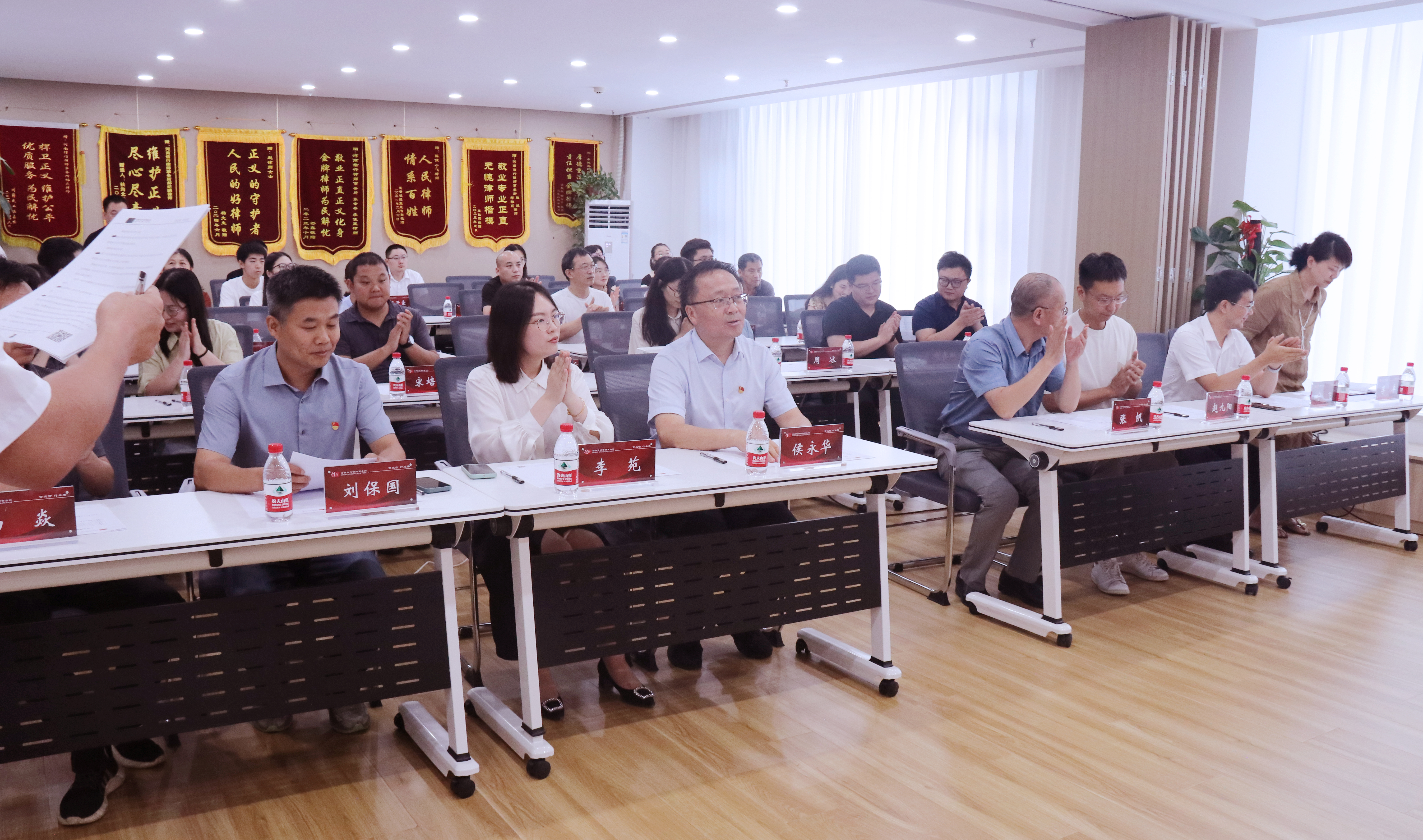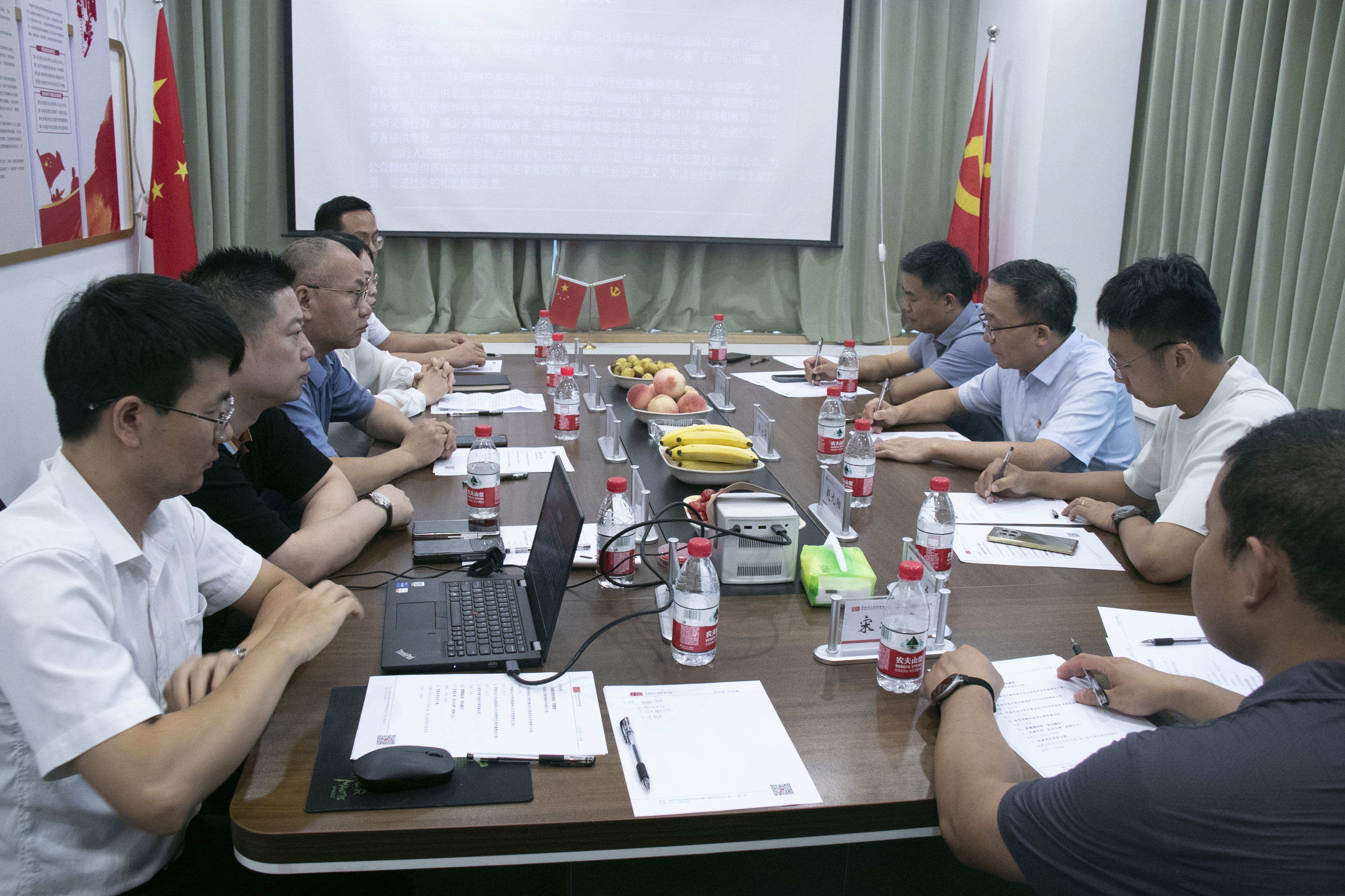 在结对共建主题会议上,双方就党建工作进行了深入交流,分享了各自在党建方面的经验和做法。河南信行律师事务所党支部书记李苑、事务所主任张帆、组织委员陈世立等先后介绍了事务所的发展历程及党建引领下的经营管理和市场拓展等方面的创新实践。侯永华、赵九阳、刘保国交流了裸体直播 和景园系在党建引领下的人才培养、教学科研和社会服务等方面所取得的成果。双方就如何进一步加强党建合作和党建活动创新进行了深入探讨,就党支部结对共建达成了共识。主题会后,刘保国以“党建引领促生态文明发展 凝心聚力谱创新思想篇章”为题为事务所全体人员上了一堂生动的党课。