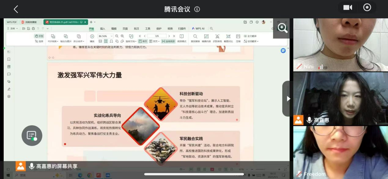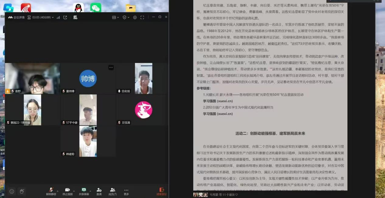 风景园林专业学生党支部讲解“初心如镜党引领,创新强军赢未来”精神内核