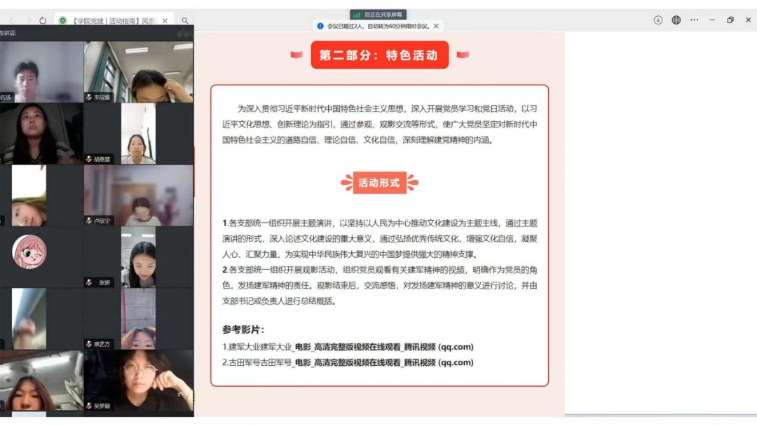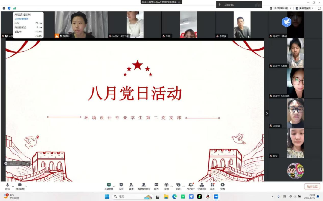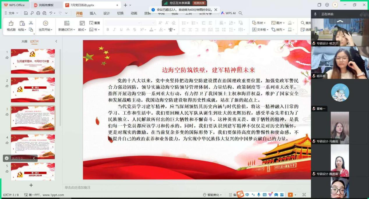 环境设计专业学生第二党支部进行“弘扬建军精神,书写时代华章”活动交流。