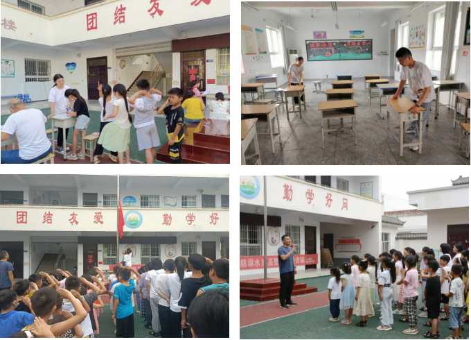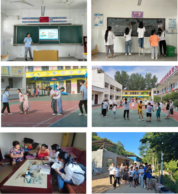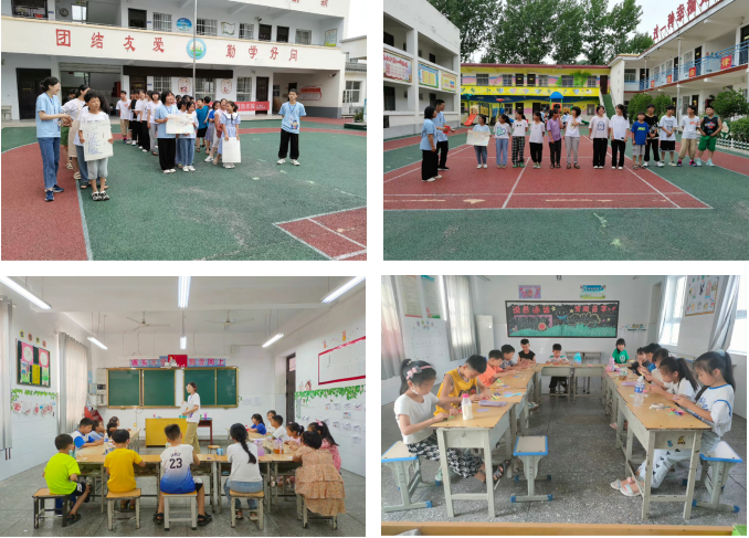 在本次支教活动中,志愿者们与孩子们同吃同住,结合自身特长和各个孩子的特点制定了专项课程,开展思想引领、传统文化、自我保护、志愿精神启蒙、音乐舞蹈、科普教育、素质拓展、趣味运动会等特色课程。除此之外,由于线下活动的便利性和夏季天气特点,团队较线上部分增设了“防溺水安全教育”、“趣味运动会”、“小小梦想家”、“爱要大声说出来”等主题活动。在防溺水活动中,团队带领孩子们观看防溺水小知识、防溺水科普视频,绘制防溺水黑板报,开展防溺水知识竞赛、防溺水安全演练、溺水情景剧表演等。趣味运动会活动丰富了孩子们的夏令营生活,还让他们在运动中锻炼了身体,增强了团队凝聚力。“小小梦想家”和“爱要大声说出来”活动则分别引导孩子门勇敢追梦、善待他人。最后,团队分组开展了家访活动,了解学生家庭情况,增进彼此感情,让家长及时掌握孩子在校的学习动态,倾听家长对支教工作的反馈和建议。