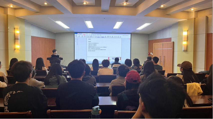 会议伊始,马梦祥用幽默风趣的语言解读了产品设计的专业内容。他围绕产品设计的定义,从常用的设计软件、可能从事的工作及未来选择等多方面着手,结合自身经历及多项案例,解答了学生在专业选择、就业规划和未来发展方面的疑问。随后,孙国栋结合学生的考研和就业意向分析了当下行业的整体形势,希望学生们提前做好规划,选择自己的强势方向进行发展。最后,武柯和李琪曼强调专业选择要以自身兴趣爱好为基础,结合今日所讲及多种因素进行慎重选择。