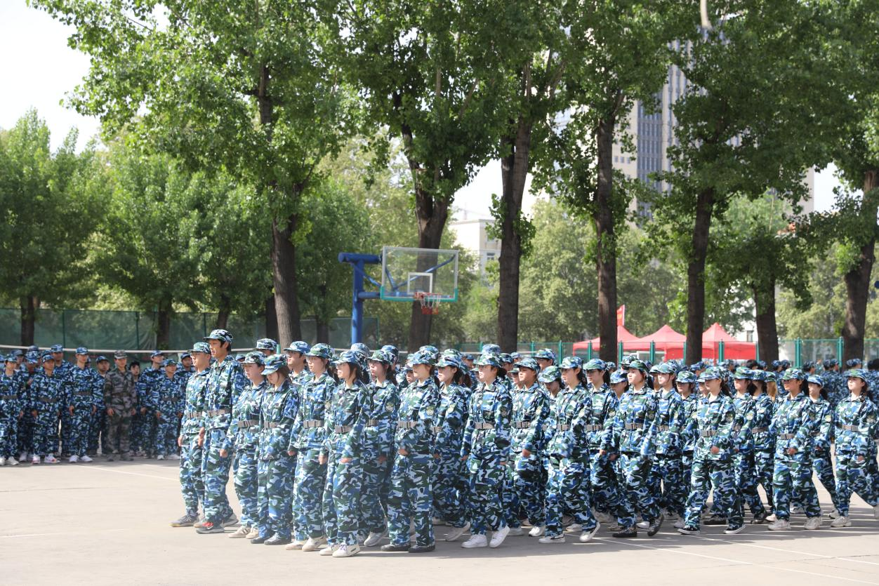 在文化路校区操场举行2021级学生军训汇报表演,21级辅导员芦嘉俊在操场检阅军训队伍,全体教官及2021级参训学生参加此次汇演。
