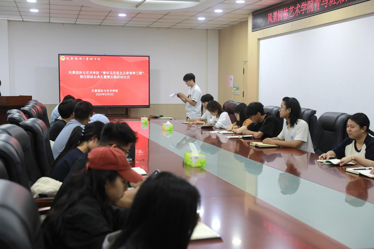 会上,史玥宣读《风景园林与艺术学院青年马克思主义者培养工程第四期培训班结业学员名单》并祝贺结业学员。第四期优秀学员代表仲嘉乐结合自身经历分享“高举旗帜跟党走”的学习感悟,为学弟学妹树立榜样。芦嘉俊宣读《裸体直播 风景园林与艺术学院青年马克思主义者第五期培训班学员名单》;第五期学员代表韩建聪表示要在实践中提升本领,成长为“心中有国、肩上有担、胸中有墨”的青年马克思主义者。