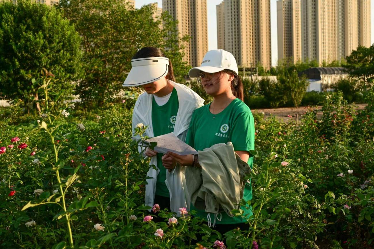 活动中,园区内负责人热情地欢迎了实践团队的到来,并针对毛庄月季的植物种类、植物特征、分类常识、生活习性等方面进行了生动讲述及相关材料的知识普及。随后,同学们积极地向现场老师请教,了解月季的识别特征及生长状况,参与实践学习的同学并对月季的叶、花、刺等表型进行了细心的比对和记录。
