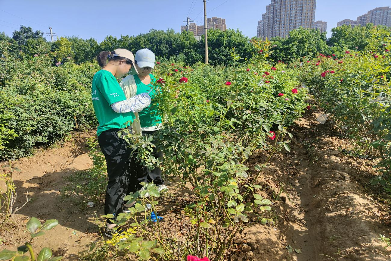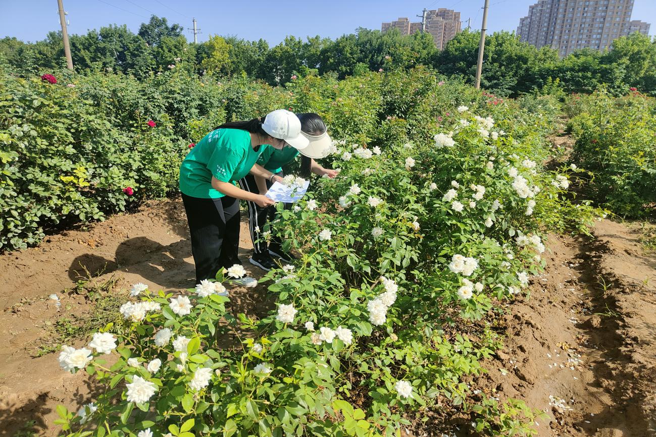 活动中,园区工作人员为同学们详细地讲解了毛庄月季的形态特征及生活习性等专业知识,并在工作人员的指导下对枝条进行了裁剪梳理。随后,实践团队成员对月季品种表现出的不同性状进行全方位调查,详细记录,并不时提出自己的不解,工作人员耐心地为学生一一解答,并对同学们的表现给予充分的肯定。