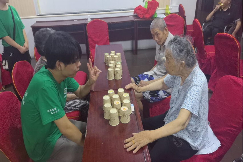 活动伊始,志愿者们与老人们进行叠杯子游戏,随着一声声指令,老人们很快就进入了状态,现场充满欢声笑语。随后志愿者和老年人们一起进行左手右手慢动作比赛,看似简单的游戏,却考验着老人们的手眼协调能力和反应速度。在热烈的氛围中,最后迎来了令人翘首以盼的扭扭棒活动。经过志愿者们的指导,老人们很快就拿起了扭扭棒开始创作,现场气氛热烈,爷爷奶奶们脸上洋溢着开心的笑容。