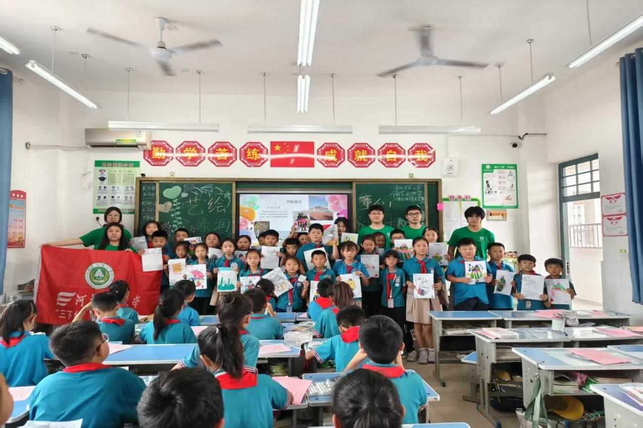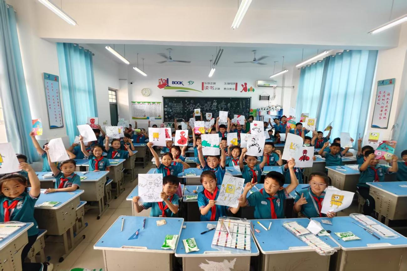 在南乐求实小学,志愿者们开展“艺术赋能乡村”美育课堂,带领孩子们用画笔描绘家乡风貌。通过绘画创作与红色故事讲述,孩子们在艺术熏陶中加深了对家乡和党的认识。最终,这些充满童真的画作汇聚成一幅生动的乡村振兴图景。