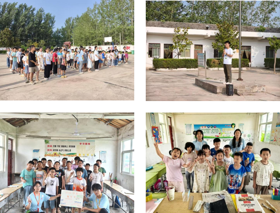 7月11日上午,风景园林与艺术学院心火支教团队与高河套小学校长、参加夏令营的全体同学和在周口市扶沟县高河套小学举办了本次暑期夏令营的开营仪式。