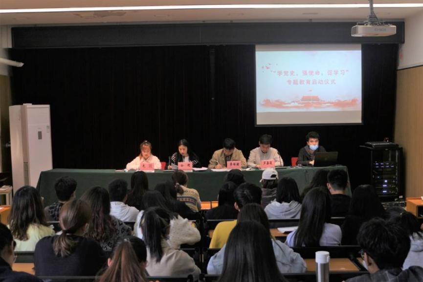 于4月15日下午在2号楼四楼报告厅举办“学党史,强使命,促学习”专题教育启动仪式。院团委书记徐珂,院团委副书记李雨澍,院团委老师史玥、芦嘉俊出席本次仪式,院青马班学员和学生党员代表参加本次会议。会议由李雨澍主持。