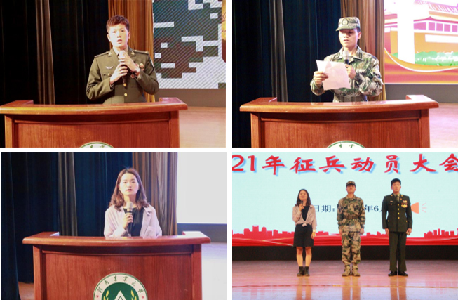 大会在铿锵的国歌声中拉开序幕。首先,马焱向在场师生形象、生动地讲解了当下大学生应征入伍的相关要求及优惠政策,勉励学院学生响应号召、踊跃参军,积极投身国防和军队现代化建设,为实现“强国梦、强军梦”贡献青春力量。接着,退役复学学生代表2019级环境设计专业1班王晨光、农大铁军代表2018级城乡规划专业2班李国发、退役复学学生代表2017级城乡规划专业1班祁梦园先后进行发言,他们分享了自身的经历感受,激发了大家的爱国崇军之情,向同学们传达了军人坚忍不拔的毅力及吃苦耐劳的精神,鼓励大家积极投身祖国的国防事业,在最美好的年华以最激昂的面貌去为国防事业做贡献。随后,三位学生代表再次上台为同学们答疑解惑,现场同学提问踊跃,气氛热烈。
