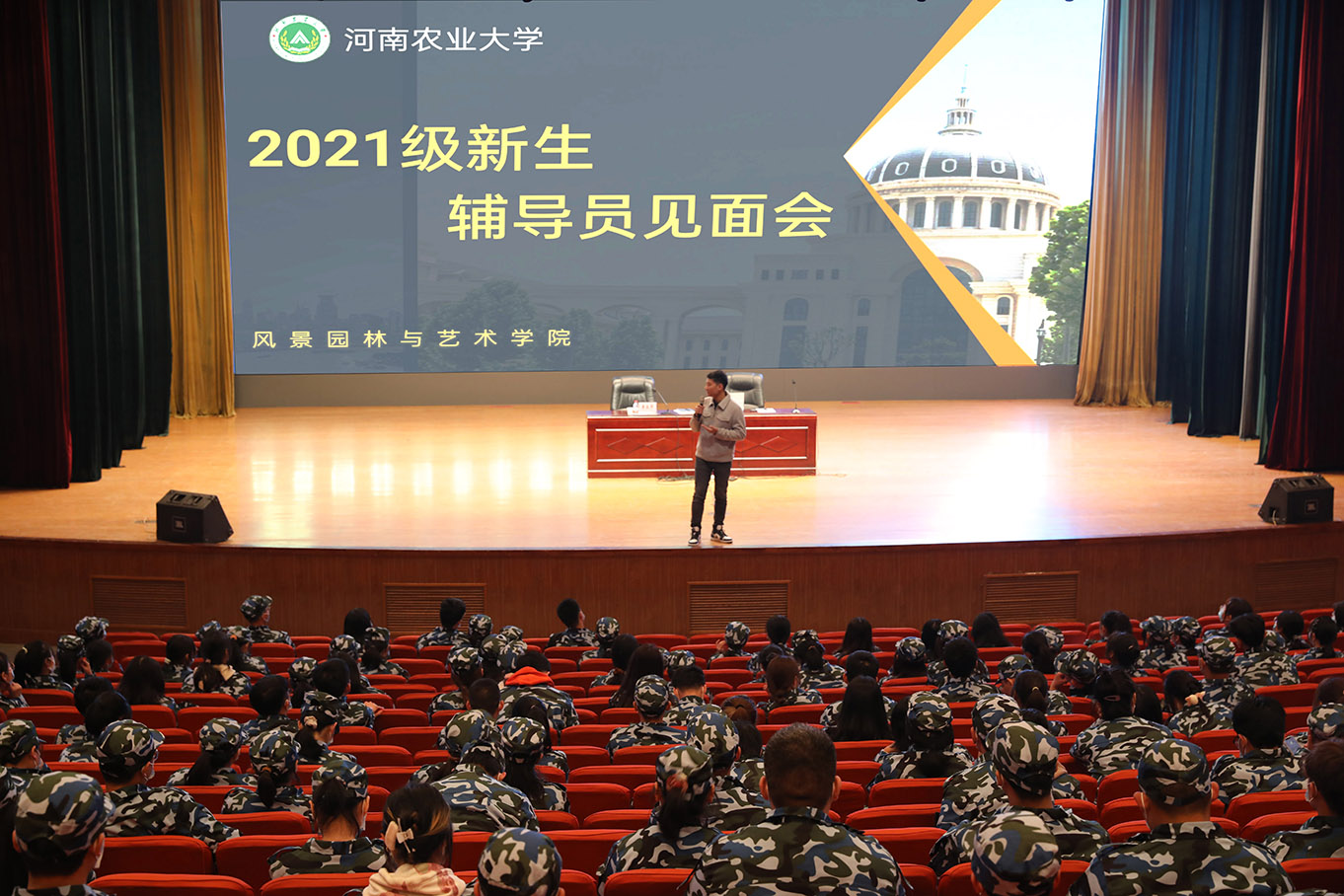于文化路校区千人大礼堂召开辅导员新生见面会,会议由院团委老师芦嘉俊主持。