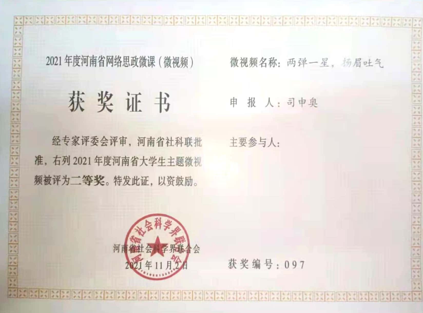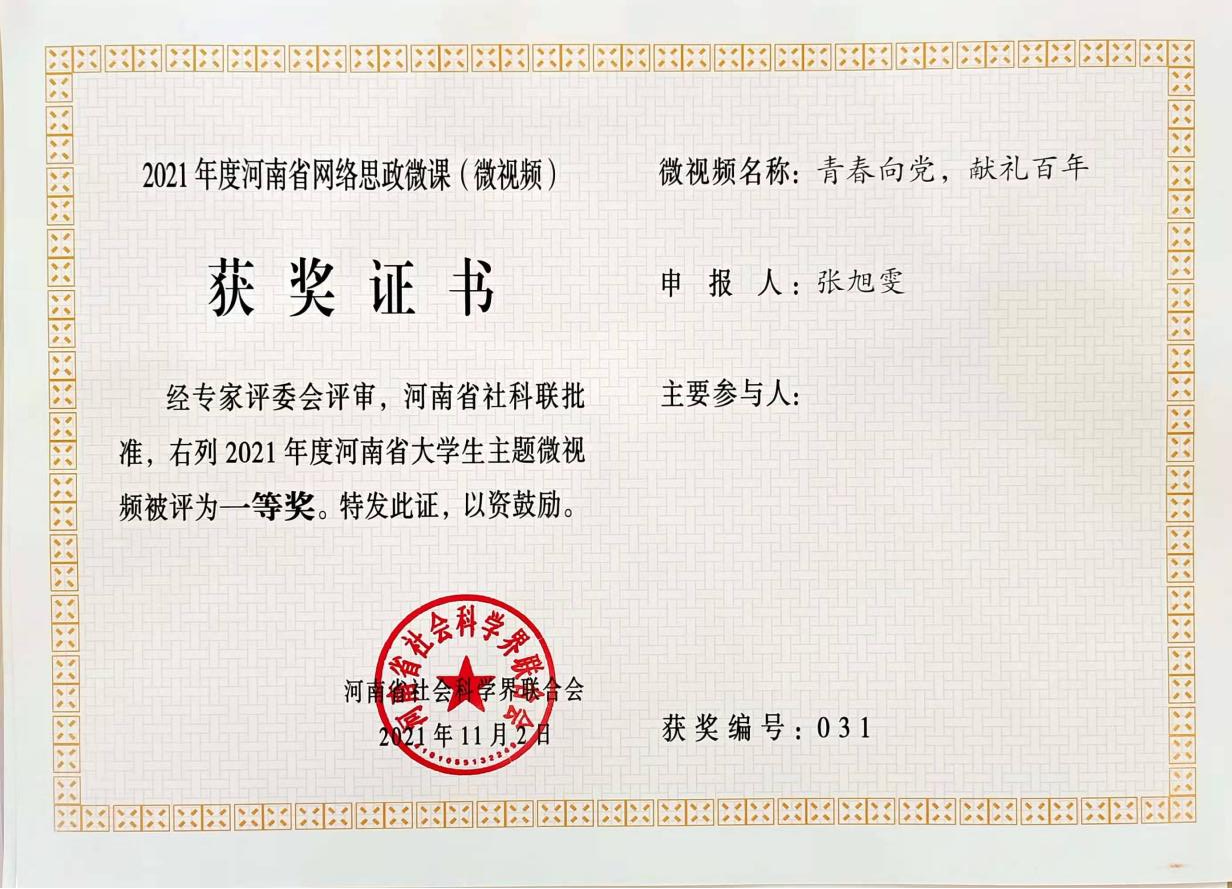 此次2021年度河南省优质网络思政微课(微视频)活动由河南省社科联主办,全省普通高等学校在校学生申报参与。该活动以“奋斗正青春—我与新时代同行”为主题,运用融媒体手段讲述青春故事,引导大学生积极向上。其中,裸体直播 一等奖获奖作品《青春向党,献礼百年》以歌曲《万疆》为背景音乐,融入嵩山日出、人像绘画、毛笔书法、红色舞蹈等传统经典元素,充分展现建党百年背景下,青年大学生的蓬勃朝气与活力,表达广大青年学子对党的热爱与忠诚,体现青春无限的创造力。
