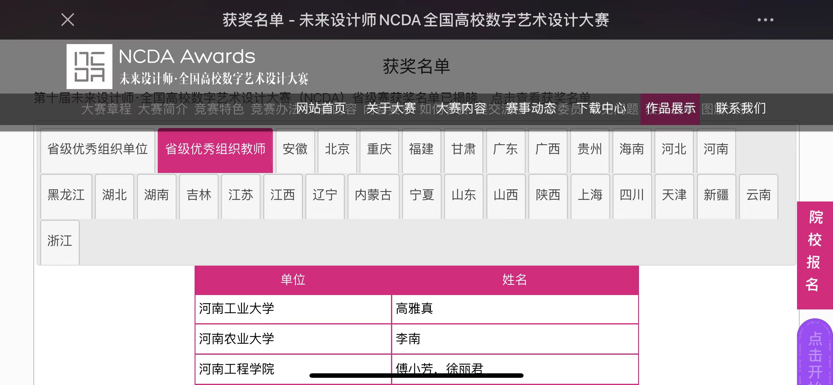 未来设计师•全国高校数字艺术设计大赛(NCDA)作为一项高规格、高水平的全国性专业赛事,“学生组”和“教师组”赛事分别入选中国高等教育学会发布的《全国普通高校学科竞赛排行榜》和《全国普通高校教师教学竞赛项目》,是高校教育教学改革和创新人才培养的重要竞赛项目之一,具有广泛影响力,得到“学习强国”学习平台等权威媒体的宣传报道及联合国机构的称赞。