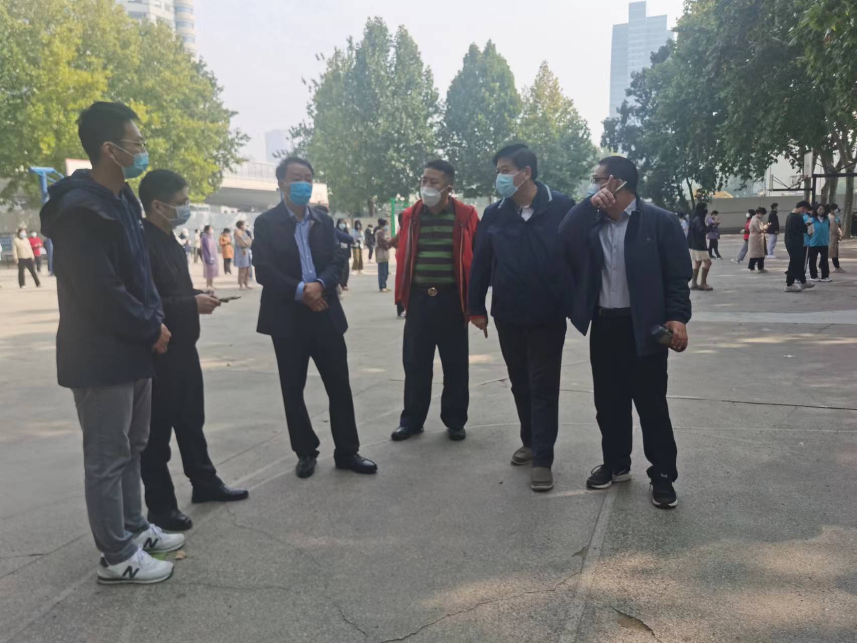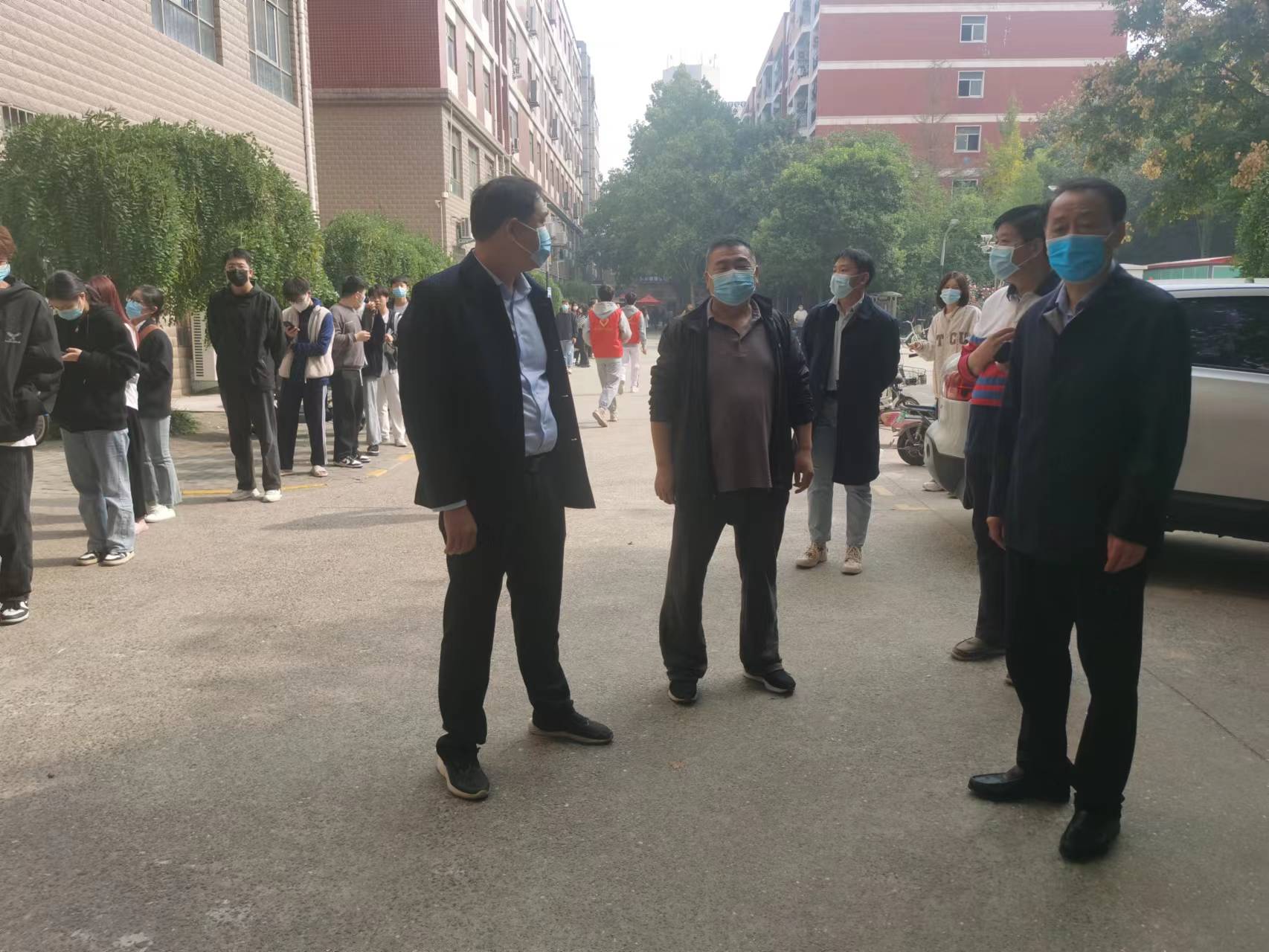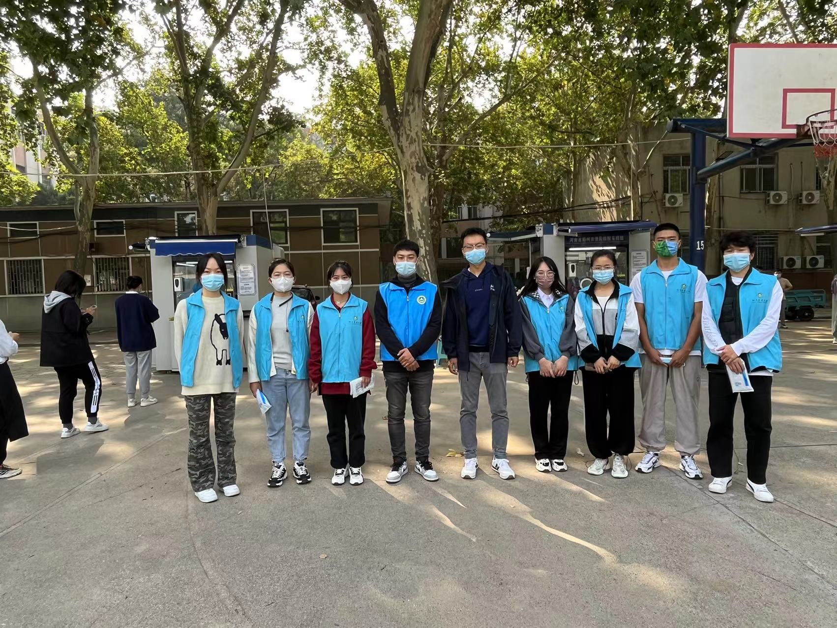 10月15日上午,学校在文化路校区,桃李园学生公寓开展全员核酸检测工作,院党委副书记赵九阳,院团委副书记李雨澍,院团委老师史玥、芦嘉俊及青年学生志愿者迅速组建志愿服务队伍,开展核酸检测志愿服务工作。