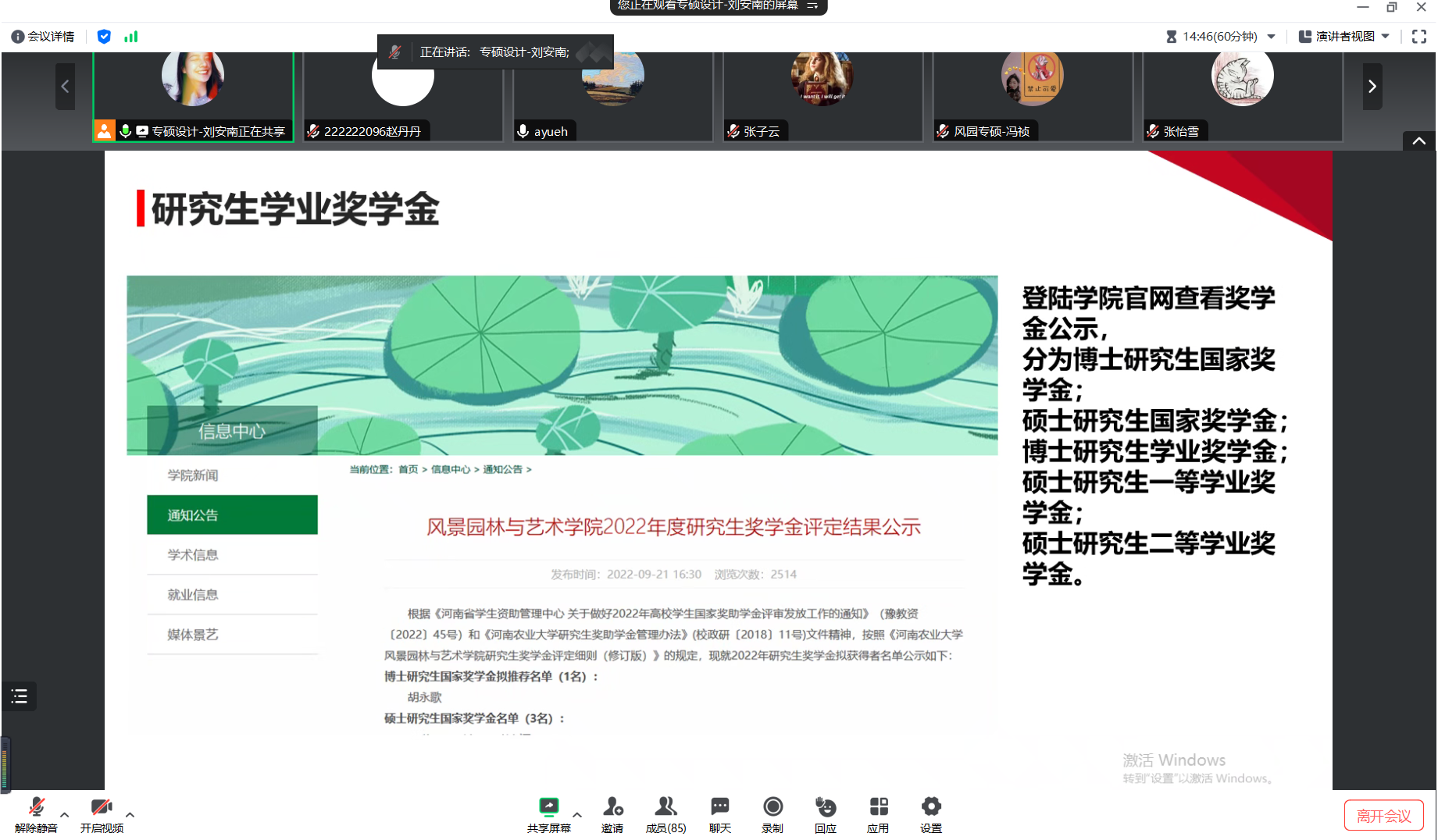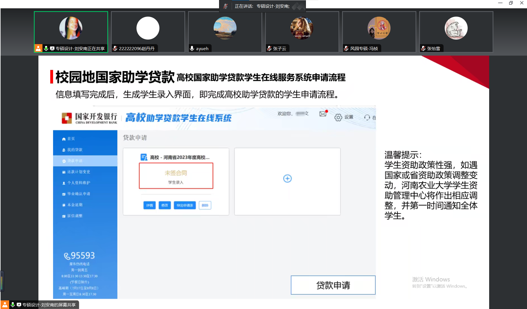 宣讲会上,研究会成员刘安南首先根据国家和学校相关文件系统地解读了学生资助体系,包括研究生学业奖学金、研究生国家助学金、校园地国家助学贷款、生源地信用助学贷款等学生资助政策体系。接着,刘安南着重就国家助学金发放、国家助学贷款的资助范围、申请条件以及注意事项等内容向同学们进行详细的讲解。随后,对学生提出的问题进行答疑解惑,使同学们对奖助学金申报和评选有了更清晰更全面的了解。