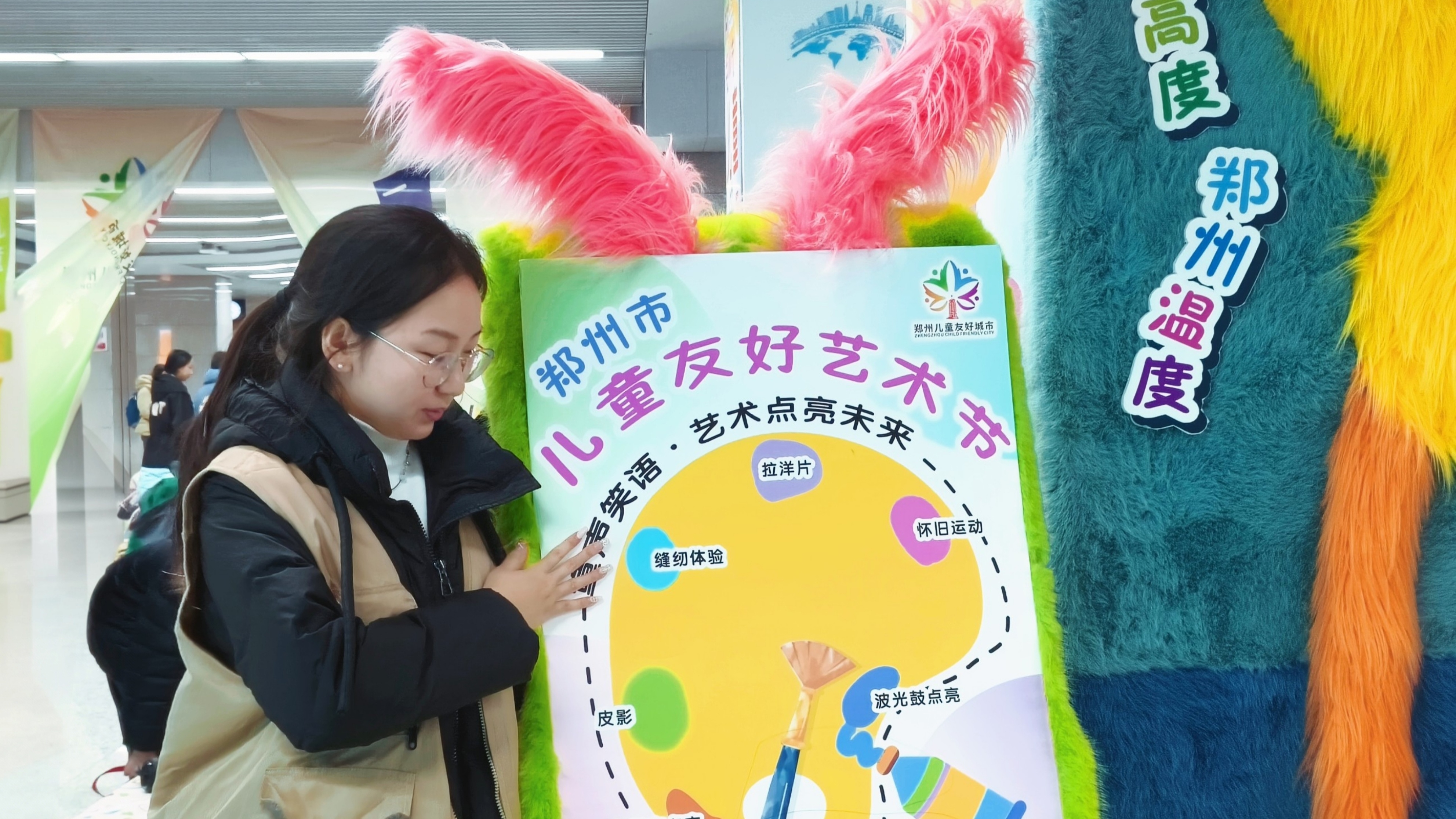 大学两年时光里,她的志愿服务足迹同样坚定,志愿服务累计超80小时,有图书馆的志愿值守,也有陪伴自闭症儿童的温暖经历。在郑州紫荆山地铁站的儿童友好节活动中,她不只是一名志愿者,更成为了孩子们眼中亲切可靠的 “创意伙伴”。面对废弃材料,她巧妙带领孩子们将瓶盖拼成彩色画、用旧布料缝制小玩偶。有位害羞的小女孩始终不敢动手,她俯下身,手把手教她剪出第一朵纸花——当女孩脸上绽放出灿烂无比的笑容时,那份直击心底的成就感,让创意传温、闲置焕彩的价值,在心头愈发笃定绵长。