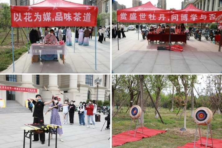 活动现场,结合专业特点,举办了牡丹艺术作品展、弓箭游戏、纸鸢绘画DIY、牡丹花茶品鉴等丰富多彩等活动。在弓箭互动区,参加活动的师生个个凝神屏气,挽弓搭箭,搭箭、扣弦、预拉、开弓、瞄准、脱弦…一方面让同学们增强了臂力、锻炼体魄、静心凝气,另一方面,弘扬了中华传统文化,让同学们能够真正地去体验传统文化项目,发扬自强不息、刚健有为的进取精神。