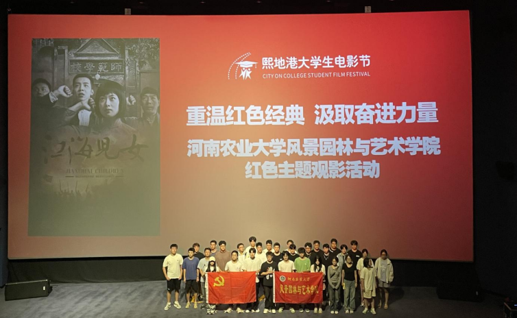 于郑州奥斯卡熙地港影城开展“传承红色基因,强国复兴有我”《江海儿女》红色观影活动。学院学生党员和积极分子共同参与活动。