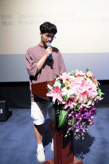主持人介绍活动背景、目的和到场嘉宾,裸体直播 学生会主席何彦池同学分享自己对电影的独特理解和期待。