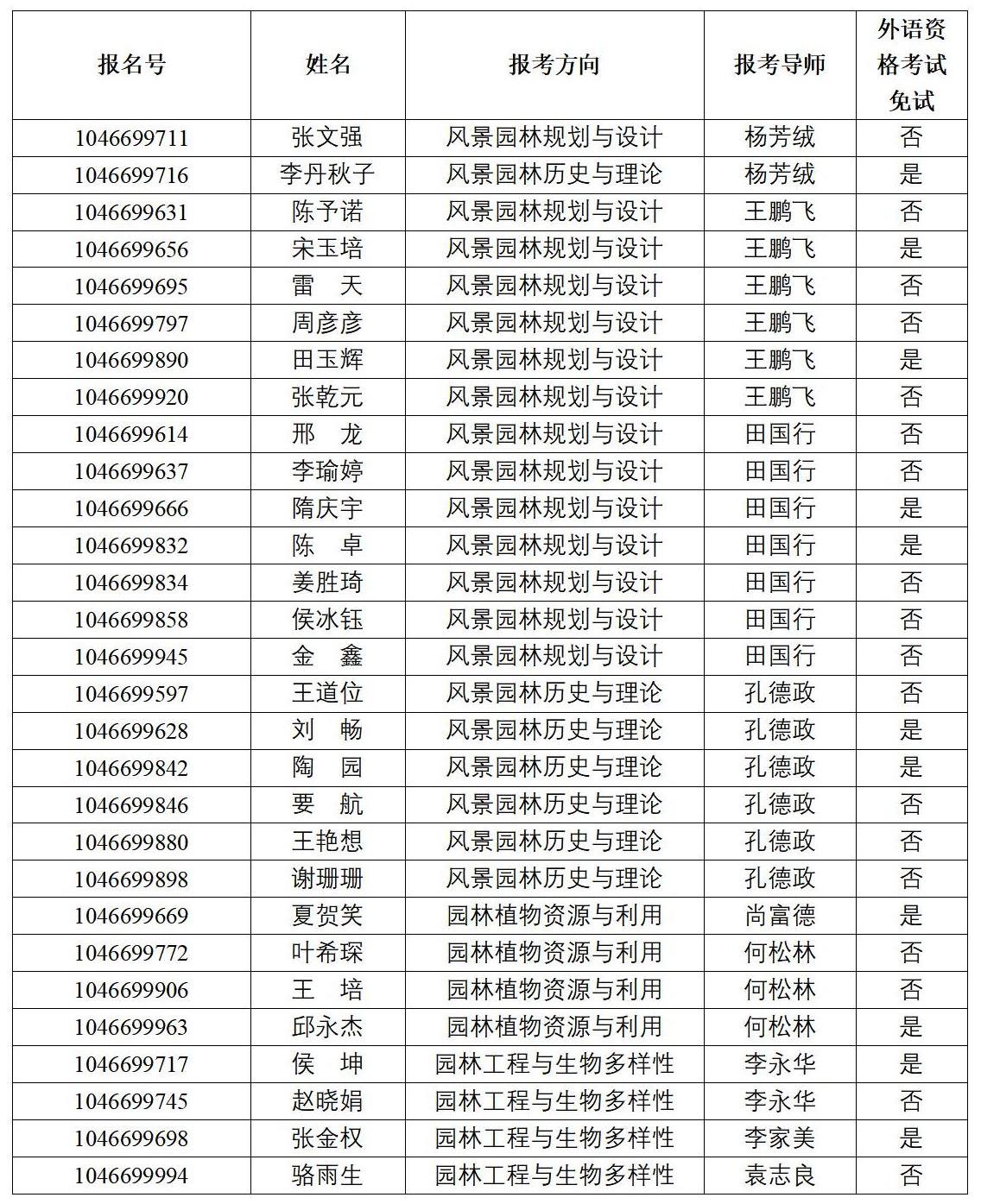 2023年风景园林与艺术学院风景园林学博士研究生申请考核制考生报考资格审核通过名单公示