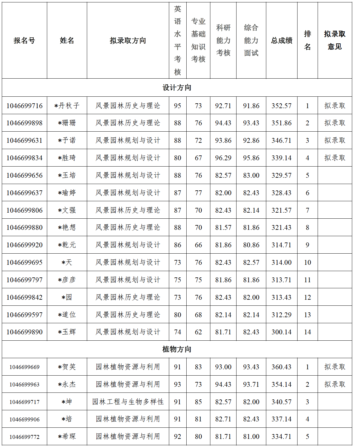 2023年风景园林与艺术学院学院博士研究生招生综合考核成绩公示