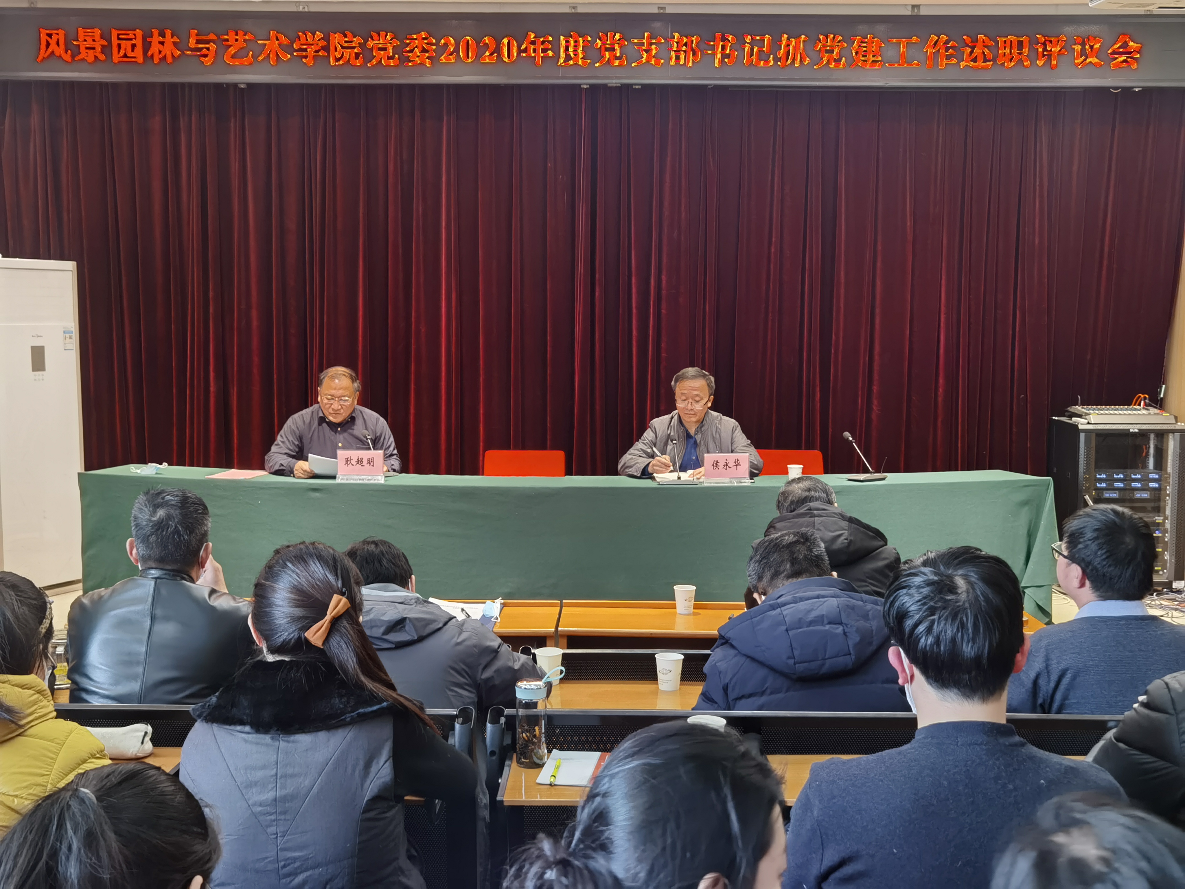 1月8日下午,风景园林与艺术学院党委在2号楼四楼报告厅召开了2020年度基层党支部书记抓党建工作述职评议大会。校处级组织员耿超明、院党委委员、全体师生党支部书记、支部委员和党员代表参加会议。会议由院党委书记侯永华主持。
