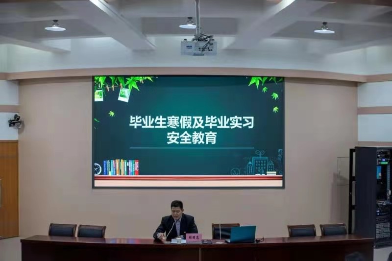 于文化路校区三百人报告厅召开毕业生寒假及毕业实习安全教育大会。院党委副书记胡明忠,院团委书记徐珂出席会议,全体2021届毕业生参加会议。会议由胡明忠主持。
