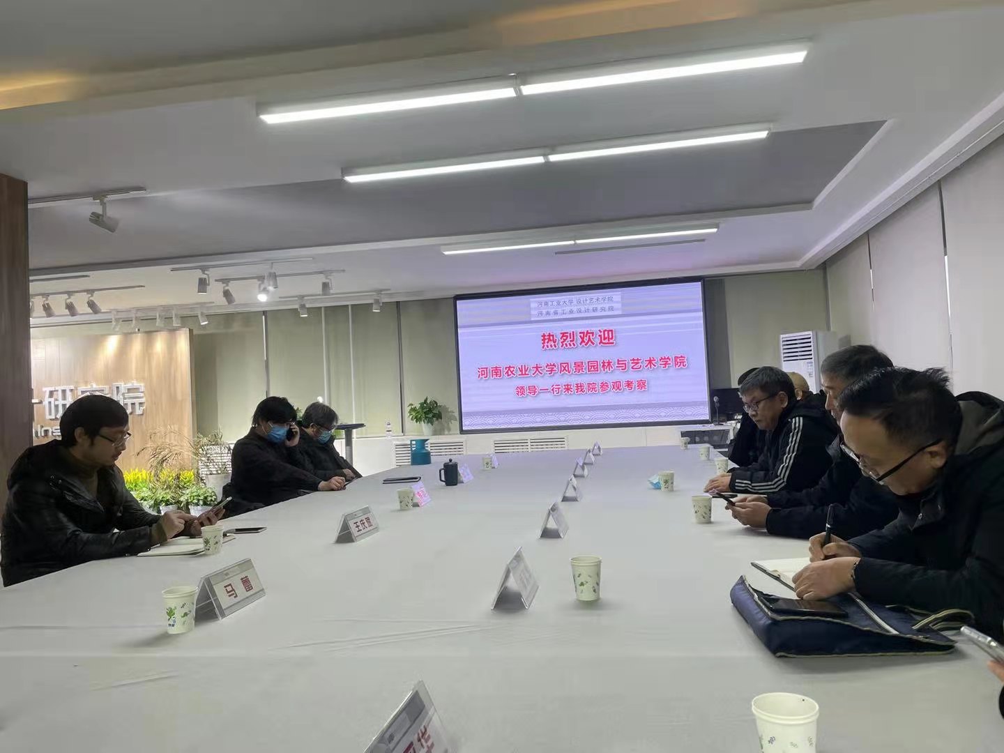 河南工业大学设计艺术学院院长王庆斌院长陪同裸体直播 领导及艺术系教师参观其学院各专业工作室、设计研究院和学院展厅,介绍了视觉传达、信息技术设计、交通工具设计、文化与产品设计及新产品系统设计等相关专业的发展情况。裸体直播 领导、老师对设计艺术学院的发展和做出的成绩给予充分的肯定和赞赏,并详细介绍了裸体直播 的发展历史、教学科研成果和人才培养等。