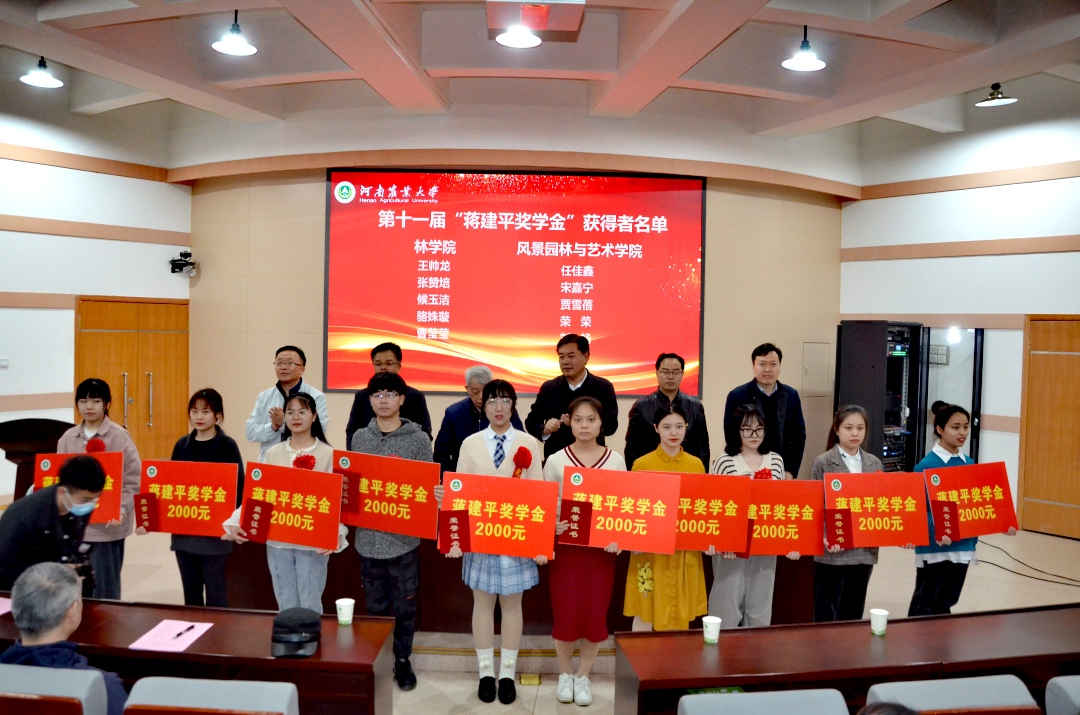 侯永华宣读了《裸体直播 林学院、风景园林与艺术学院关于表彰第十一届“蒋建平奖学金”获得者的决定》。随后,与会领导一同为10名第十一届“蒋建平奖学金”获得者颁发获奖证书及奖学金。
