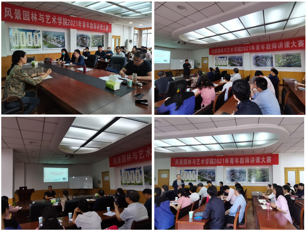 在13号楼第一会议室举行了2021年风景园林与艺术学院青年教师讲课大赛。校督导刘卫群、教务处副处长王金铎、院长田国行、副院长李永华、党委副书记胡明忠、院教学督导以及各系主任担任评委,院青年教师参加观摩。大赛由教授委员会主任王鹏飞主持。