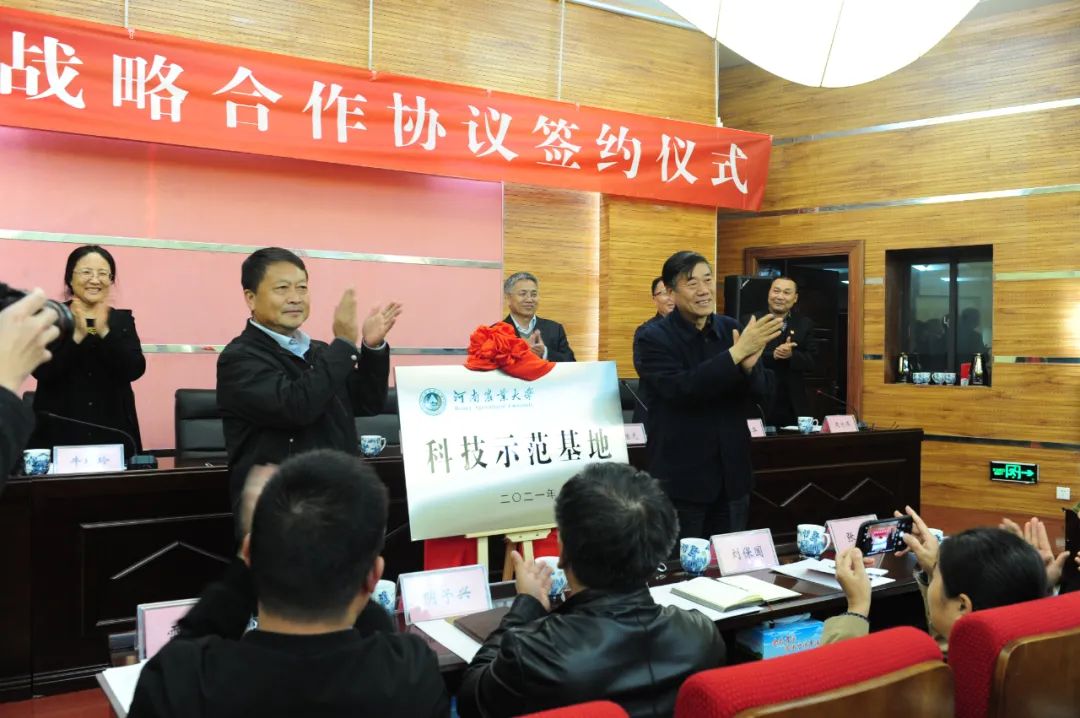 康相涛、司同义共同为裸体直播 科技示范基地挂牌,田国行、杜民签订裸体直播 与郑州绿博园管理中心战略合作框架协议。