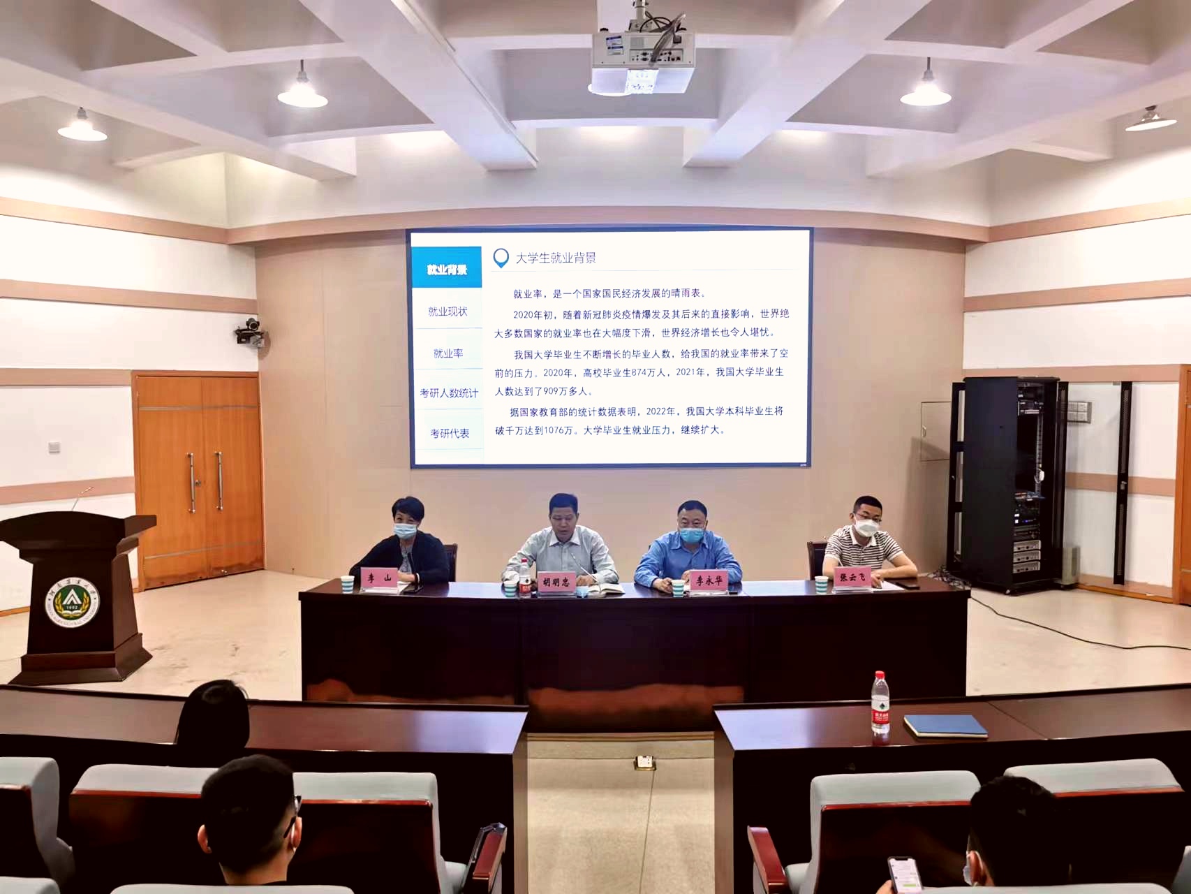 会议伊始,胡明忠结合疫情之下的就业形势分析了考研的重要性和必要性,对考研动态、考研方向、考研前景等作深入解读。李永华重点为同学们解析专业发展、专业跨考、院校选择等方面的问题,鼓励同学们提前了解相关专业考研知识。翟碧璇、张诗诗、朱悦合、刘倩、邓苗、王梓煜等六位2022届上岸的优秀研究生代表依次分享考研经验,她们从不同专业角度切入,就专业备考、时间规划、学习技巧、心态调整等方面展开分享。