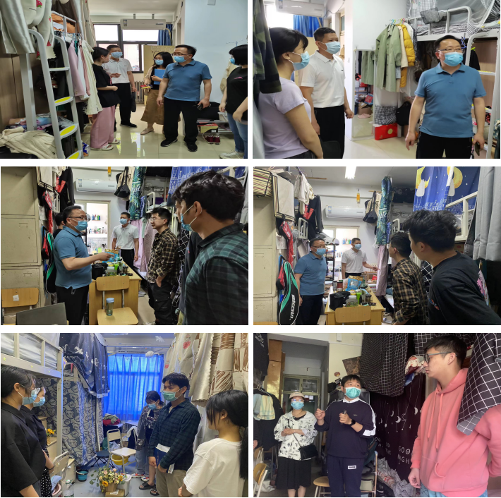为深入了解疫情防控期间学生思想动态和健康情况,筑牢校园安全防线。5月6日,院党委书记侯永华,院党委副书记胡明忠,院办公室主任刘其梅,院团委副书记李雨澍,团委老师史玥、马焱和芦嘉俊等分别走访、慰问文化路校区和桃李园学生公寓本科生及研究生宿舍。