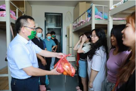 走访过程中,领导老师们给新生带送来了水果表示慰问和关怀,深入了解了学生返校后的思想、学习、生活状况,耐心细致地解答学生们的问题,帮助学生更快融入大学校园生活。侯永华亲切询问学生假期生活及返校感受,嘱咐大家大学期间要全面发展、多点开花,同时强调在疫情期间加强自身防护,严格按照学校疫情防控工作通知要求,坚持每日体温检测和健康打卡,配合学校做好相关防疫工作。田国行勉励新生要努力学习专业知识,珍惜青春时光,言信笃行,学有所成,争做品学兼优之人,以良好的精神面貌和积极进取的心态开启新学期的学习生活,在未来的崭新征程中绽放光芒。
