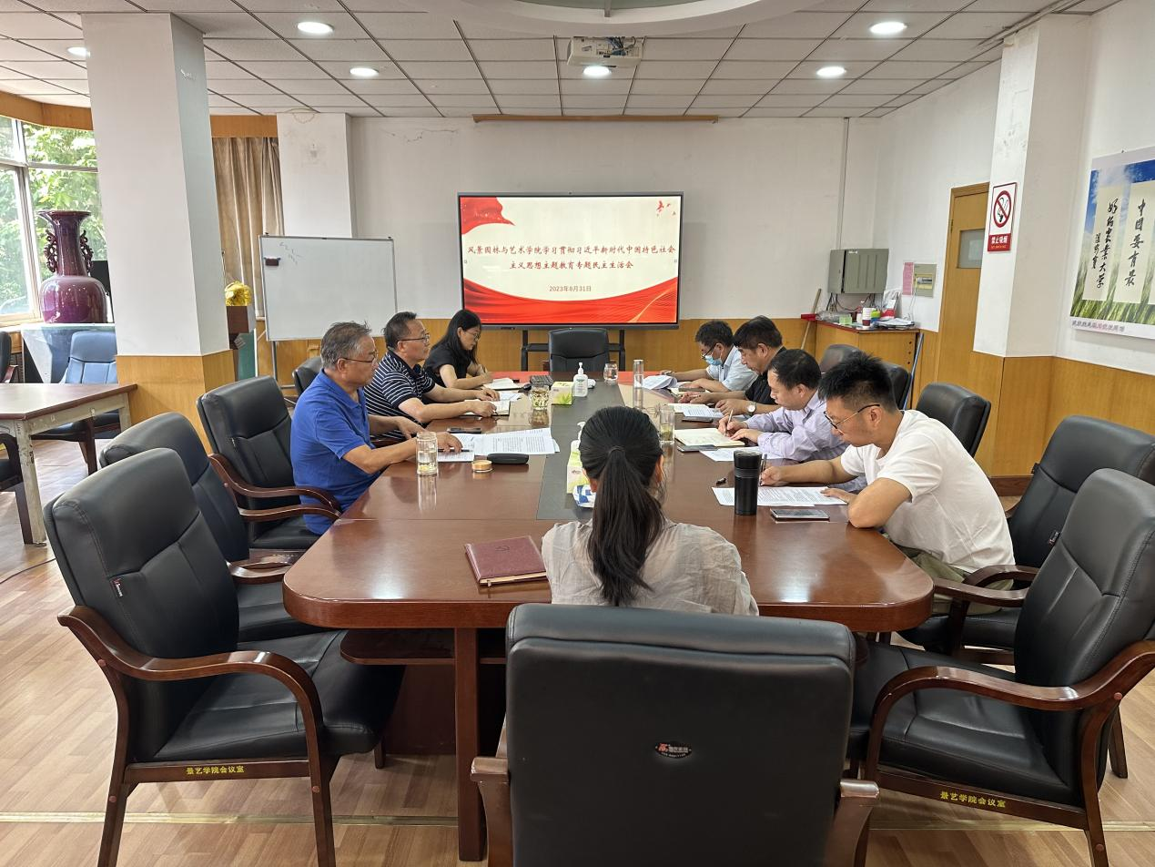 8月31日上午,风景园林与艺术学院在文化路校区召开学习贯彻习近平新时代中国特色社会主义思想主题教育专题民主生活会,聚焦“学思想、强党性、重实践、建新功”总要求,对照“凝心铸魂筑牢根本、锤炼品格强化忠诚、实干担当促进发展、践行宗旨为民造福、廉洁奉公树立新风”的具体目标,深入对照检视,深刻党性分析,制定整改措施,开展批评和自我批评,进一步统一思想、统一意志、统一行动,坚定拥护“两个确立”、坚决做到“两个维护”。院处级党员干部和党委委员参加,院长田国行列席会议。会议由院党委书记侯永华主持。