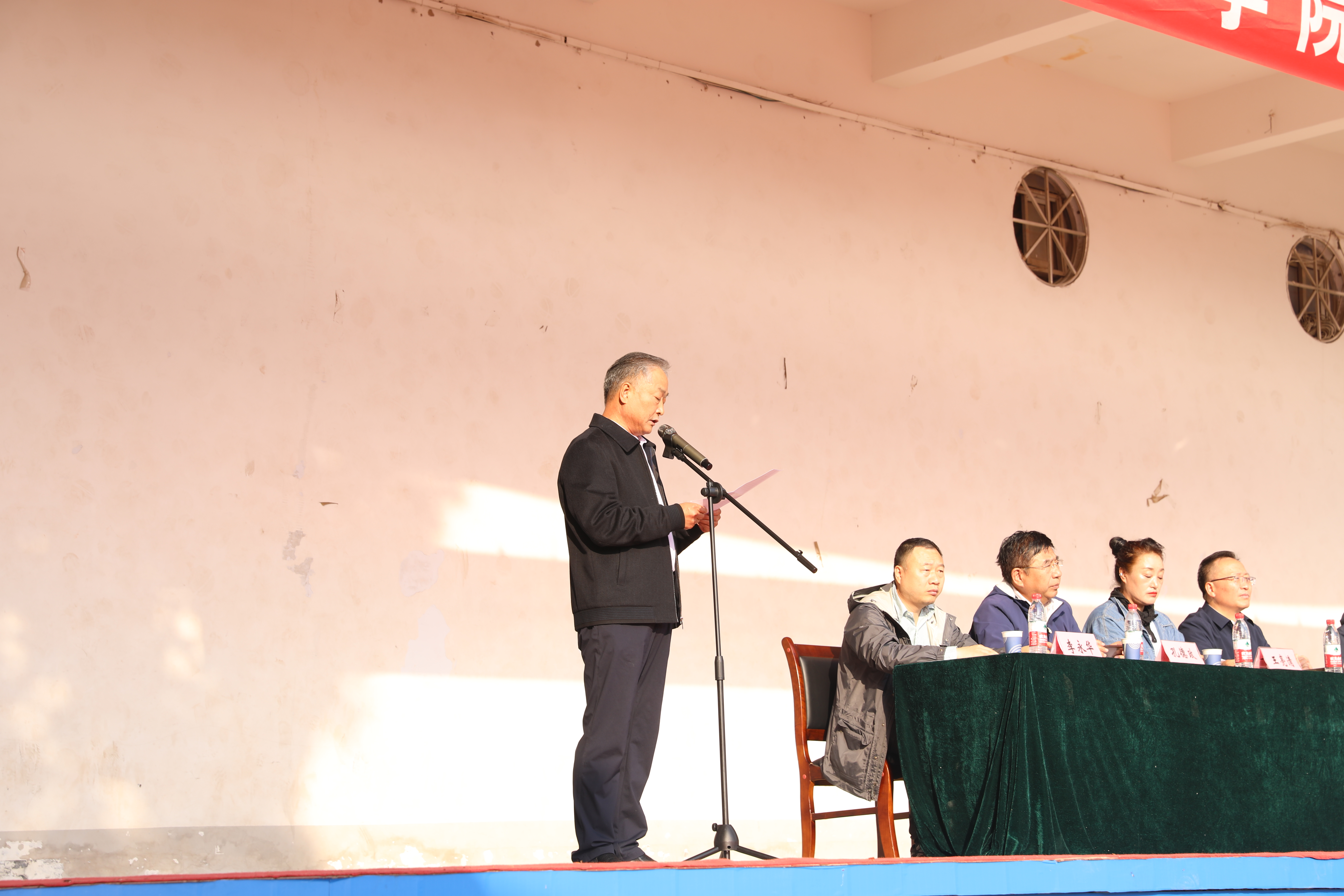 在文化路校区田径场隆重举行第二届田径运动会。院党委书记侯永华,院长田国行,党委副书记赵九阳,副院长孔德政、李永华、阴予兴,运动会总裁判长、体育学院教师王亮清等出席开幕式。开幕式由赵九阳主持。