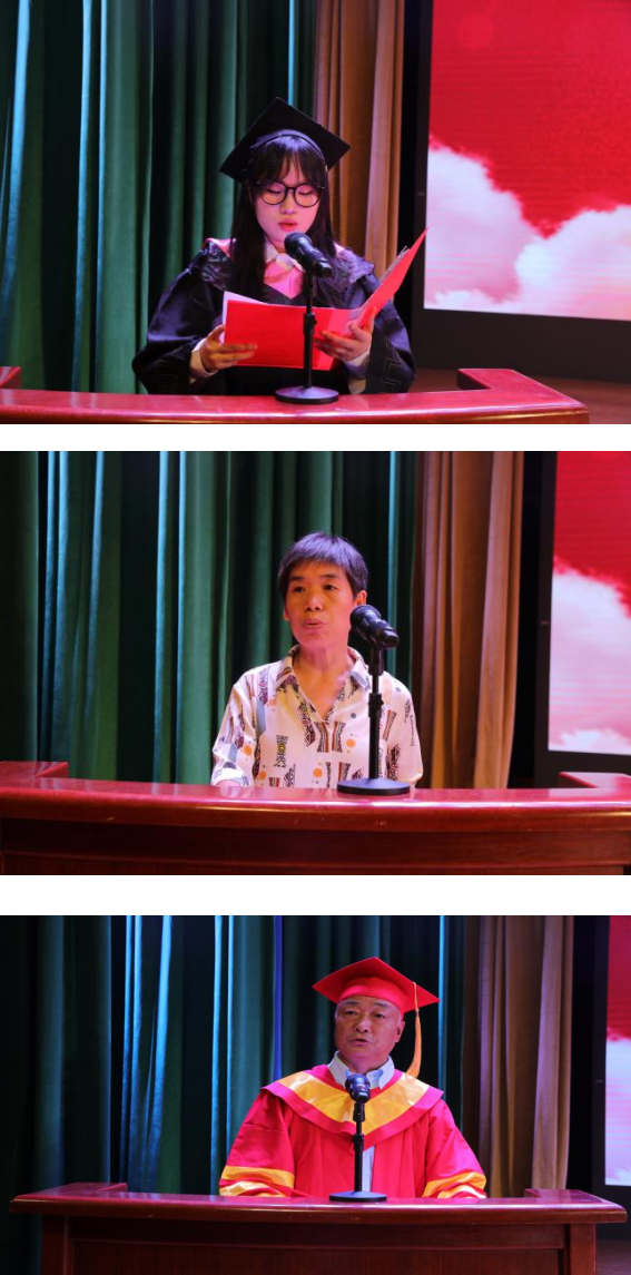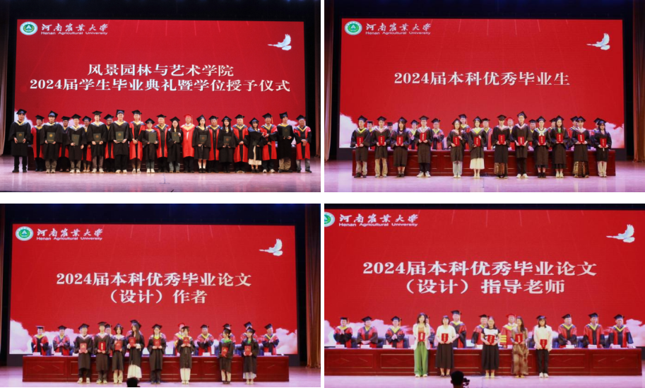 副院长孔德政宣读了《关于表彰2024届本科优秀毕业生的决定》;副院长阴予兴宣读了《关于表彰2024届优秀毕业论文(设计)及优秀指导教师的决定》;副院长李永华宣读了《裸体直播 风景园林与艺术学院关于学位授予的决定》。