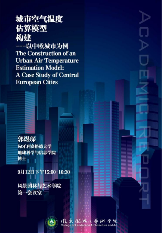 2024年9月12日下午15:00至16:30,匈牙利塞格德大学地球科学与信息学院博士郭煜琛,应邀在风景园林与艺术学院第一会议室进行了题为《城市空气温度估算模型构建——中欧城市的研究》的学术报告。此次报告由河南省高校学科创新引智基地支持,风景园林与艺术学院的相关师生积极参与了此次报告会。