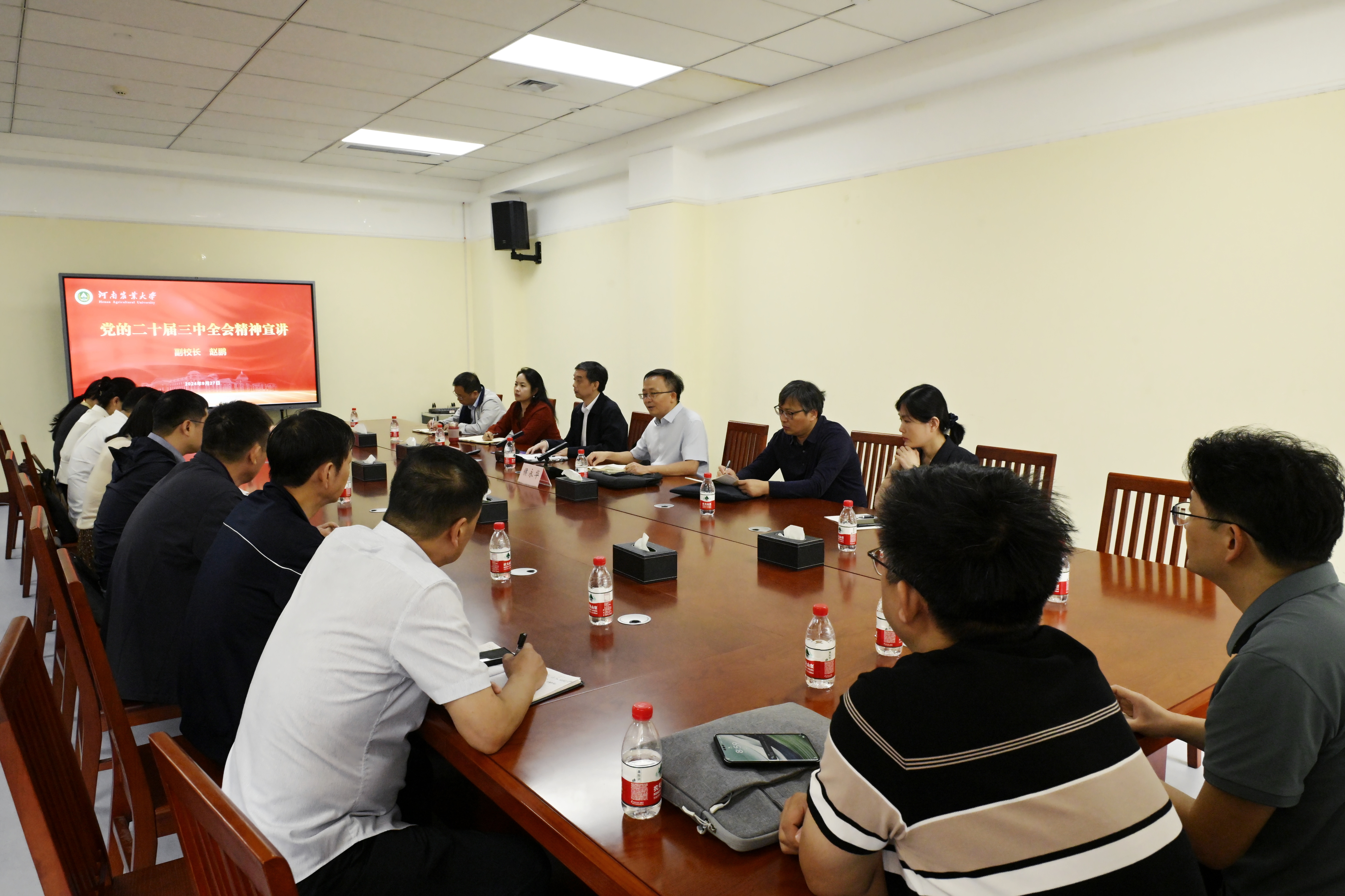 9月27日上午,副校长赵鹏为风景园林与艺术学院、生命科学学院、外国语学院、图书馆宣讲党的二十届三中全会精神。相关单位负责同志,教师代表参加会议。会议由风景园林与艺术学院党委书记侯永华主持。