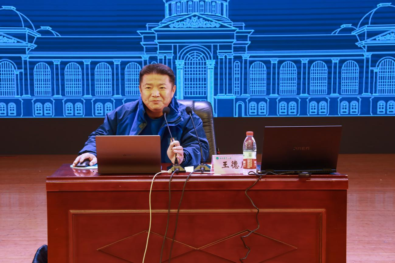会上,王德胜为学生们讲解了基础安全知识,简要介绍了相关法律法规,并就国家安全、交通安全、消防安全和财产安全四个方面展开详细讲解。随后他结合亲身经历,通过真实案例分析向新生们强调了安全的重要性,提醒同学们要时刻牢记“生命第一,安全至上”的理念,增强自我防范意识,形成安全屏障,筑牢安全防线。