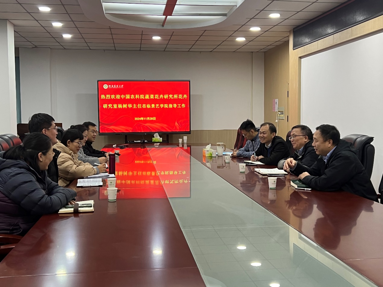 刘艺平首先介绍园林系基本情况,相关科研现状,对未来与蔬菜花卉研究所的合作表达深切关注与期盼。 杨树华主任对学院的邀请表达了真挚的感谢,介绍了蔬菜花卉研究所的基本情况,其中详细介绍了花卉研究室的发展和现状,尤其是花卉研究室的科研平台和科研情况,并表示花卉研究室与学院的教学和科研有很大的契合和共通点,对双方未来的合作充满信心。