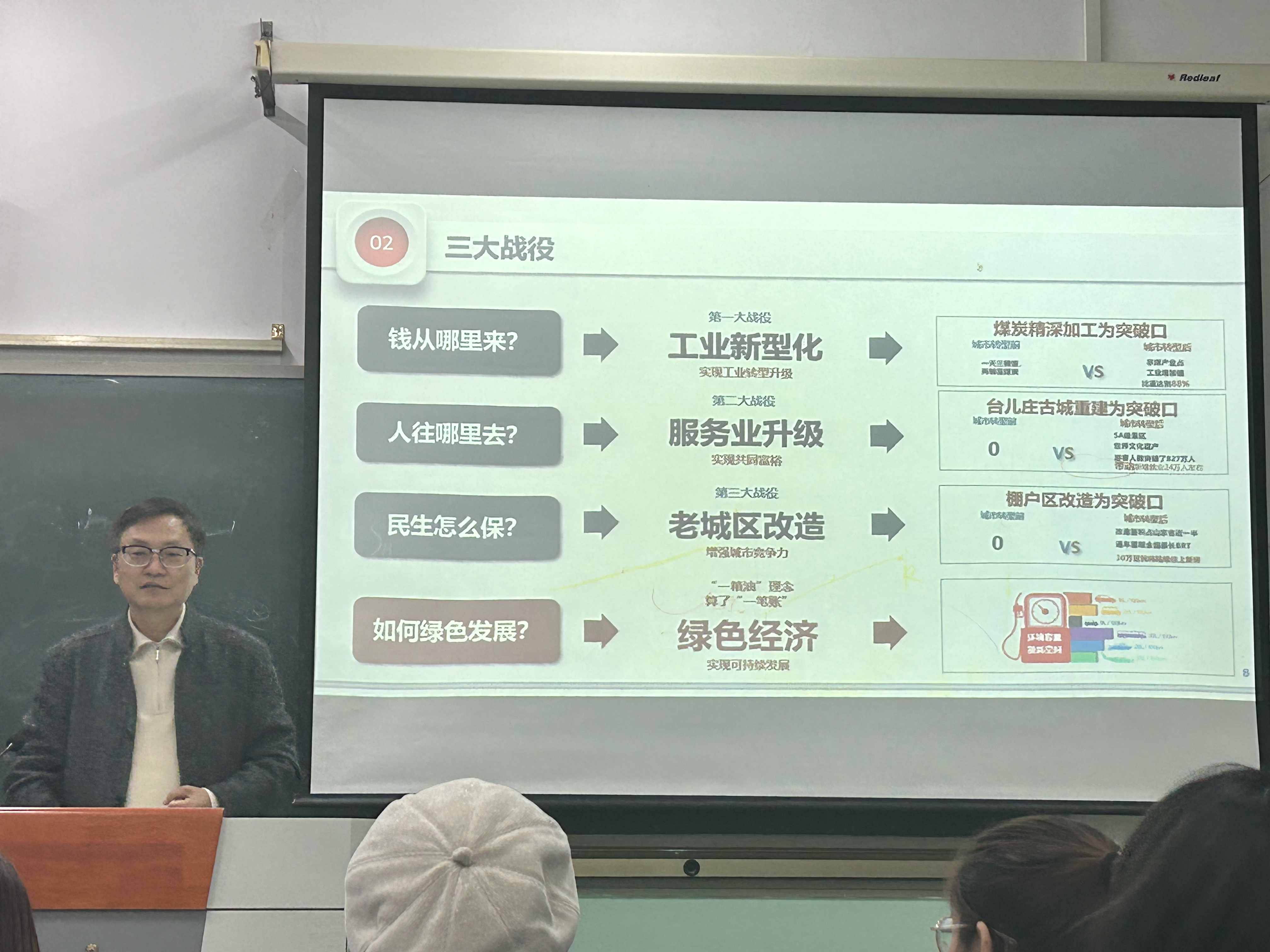 陈伟博士的报告重点针对当前我国古城古镇建设同质化严重、城市更新规划缺失情绪价值等问题,系统回顾了近年来古城建设存在的难题,提出了资金—游客—民生的思考逻辑方式。在报告中,陈伟博士分享了对于实现古城改造、绿色经济与可持续发展的观点,提出通过工业新型化实现转型升级,通过服务业优化实现共同富裕,通过老城区改造增强城市竞争力,并通过对台儿庄古镇、新密古城等实际案例的讲述进一步展示了如何建设特色古城的相关策略。