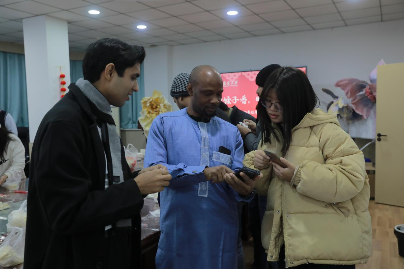 活动现场,领导老师们与留学生亲切互动交流,分享包饺子的技巧与心得。志愿者们则在一旁耐心协助,从揉面、擀皮到包馅,帮助留学生们逐渐掌握包饺子的要领。留学生们动手实践,一放一捏之间,饱含着对文化交融的热忱,大家热情高涨,气氛热火朝天。随着一盘盘饺子出锅,大家共同品尝着美味的饺子,留学生们纷纷对中国美食文化赞不绝口,并表示深切感受到了学院的关怀与重视。