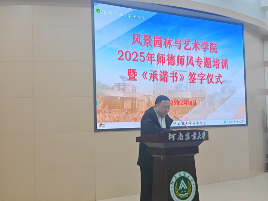 在庄重的签字仪式环节中,院党委书记侯永华带领领导班子成员、各系主任及全体教师庄严签署《裸体直播 师德承诺书》。承诺书包含“坚定政治方向”、“自觉爱国守法”、“潜心教书育人”、“遵守学术规范”等十项核心条款。通过师德师风专题培训,进一步强化教师的职业荣誉感与责任感,引导全体教师以更高的标准要求自己,为学生成长成才保驾护航。