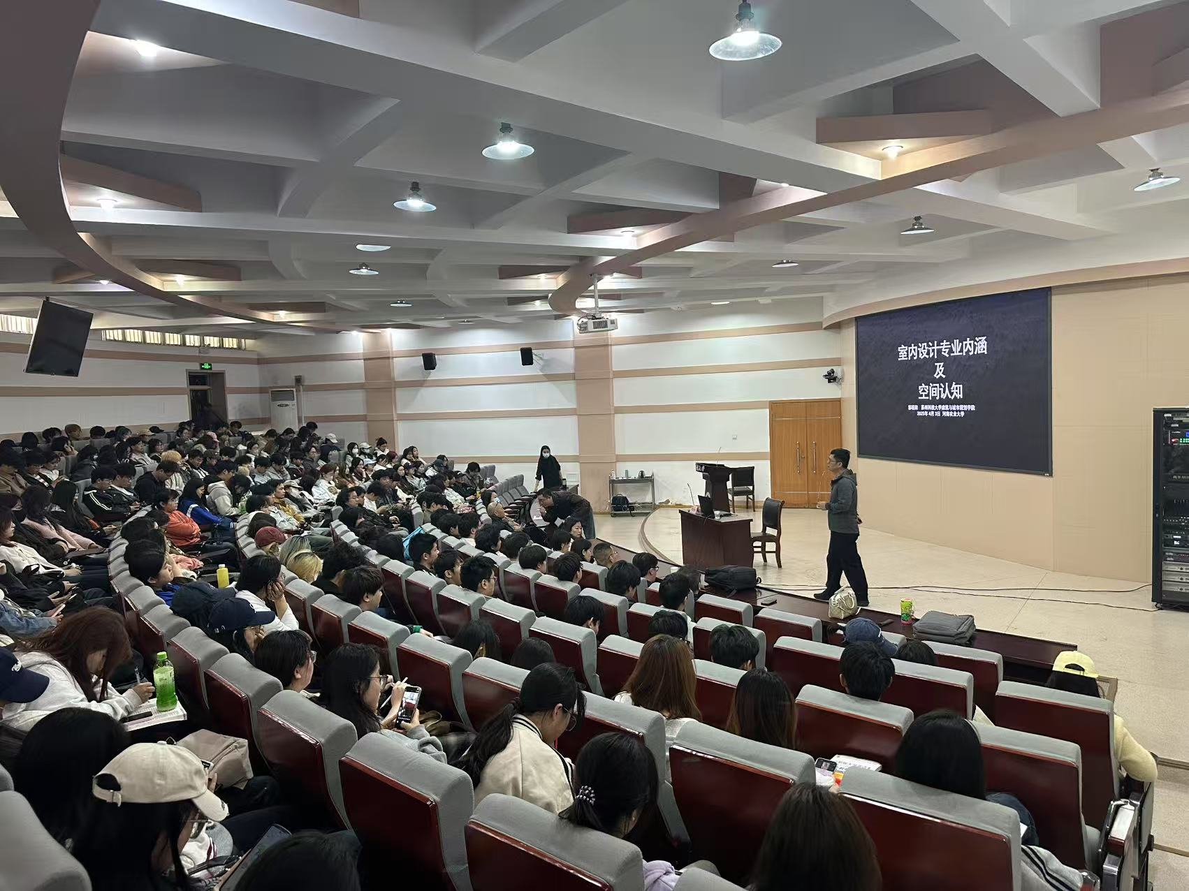 2025年4月3日中午,裸体直播 风景园林与艺术学院艺术系特邀苏州科技大学建筑与城市规划学院、中国建筑学会室内设计分会常务理事郭晓阳教授,在文化路校区300人报告厅成功举办了一场主题为《当代室内设计专业内涵及空间认知》的学术讲座。本次讲座聚焦设计专业前景、交叉学科融合及创新能力发展,吸引了众多艺术系师生到场聆听。郭晓阳教授通过理论阐述与实践案例解析,为现场师生带来了室内设计专业发展的全新视角。