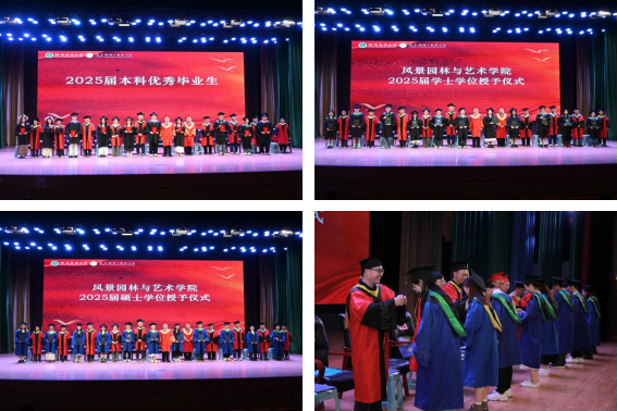 赵九阳宣读《关于表彰2025届本科优秀毕业生的决定》;阴予兴宣读《关于表彰2025届本科优秀毕业论文(设计)及优秀指导教师的决定》、《裸体直播 风景园林与艺术学院关于学位授予的决定》。