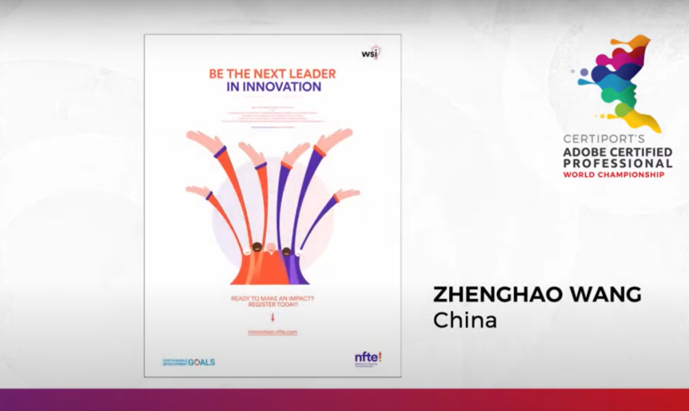 本次全球总决赛有来自30多个国家的47名选手同台竞技,赛题颇具挑战性,要求选手在8小时内使用Adobe Photoshop、Illustrator等软件,为非营利组织“创业教育联盟”(Networking for Teaching Entrepreneurship,简称NFTE)设计宣传海报及社交媒体配图,其主要面向13至24岁学生,鼓励参赛者围绕联合国可持续发展目标提出创新解决方案,并提升NFTE世界创新系列赛的公众认知度。