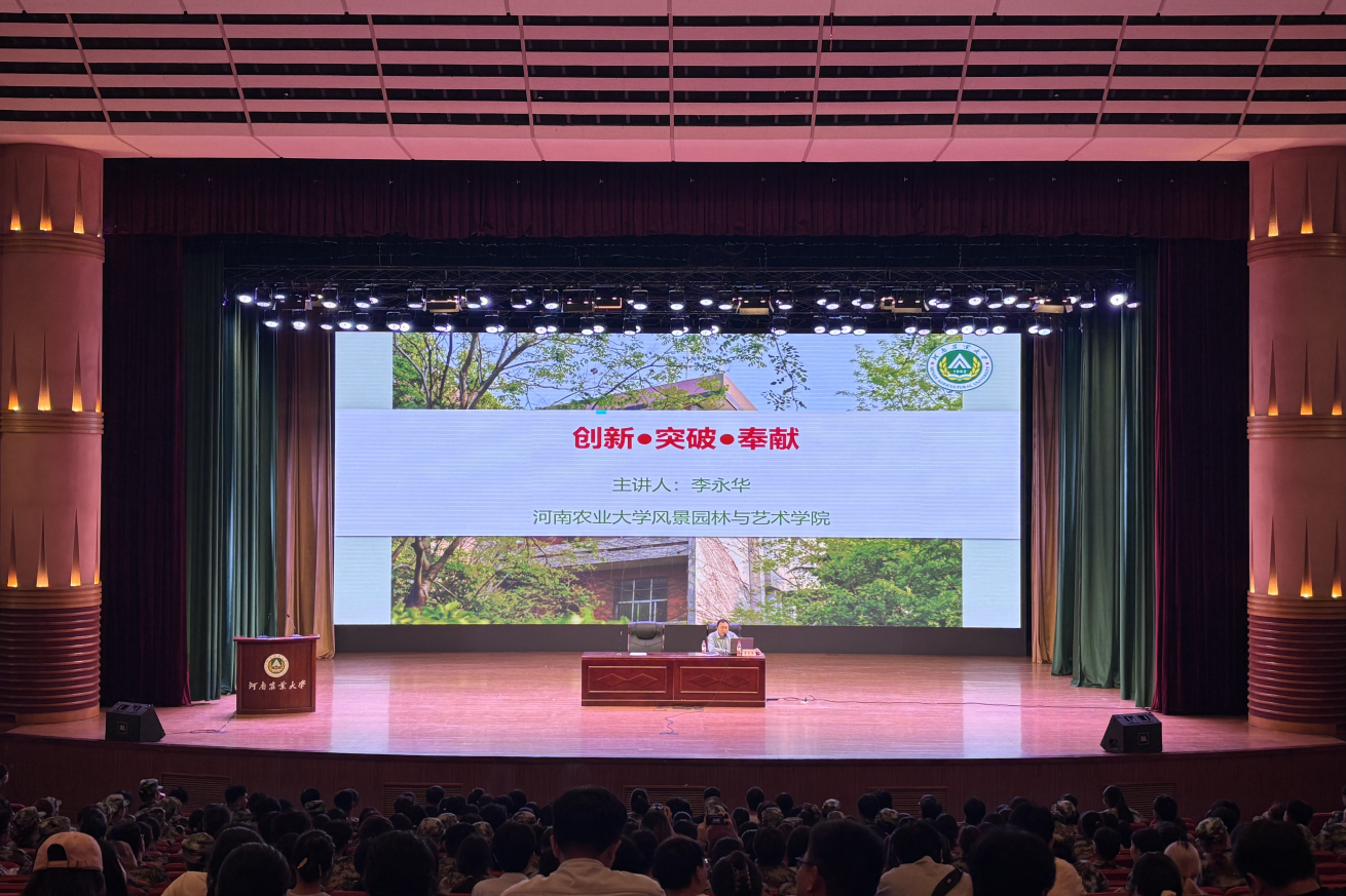 院长李永华代表学院全体师生员工向2025级新生表示热烈欢迎。他介绍了学院的发展历程、学科建设成果、师资队伍优势及人才培养特色,对新生提出三点期望:第一,学会学习,以专业本领扎根时代需求。尽快转变学习方式,注重知行合一,将专业知识与国家需求相结合。第二,学会思考,以理性智慧回应时代命题。面对学术与社会问题,要有批判质疑的勇气,也要有敬畏与责任的担当。第三,学会生活,以健康姿态扛起时代责任。要学会自律与合作,懂得感恩与奉献,从集体中汲取力量,在实践中锤炼品格。景艺学子应以“人与自然和谐共生”为己任,把论文写在祖国大地,把设计融入人民生活。